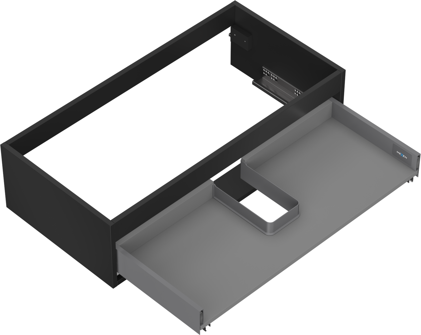 Decupajul în sertar este proiectat în așa fel încât să acomodeze sifonul, care este esențial în instalațiile de lavoare. Datorită acestui fapt, mobila poate fi montată complet funcțională, fără a fi necesară renunțarea la spațiul din sertar în favoarea instalației.