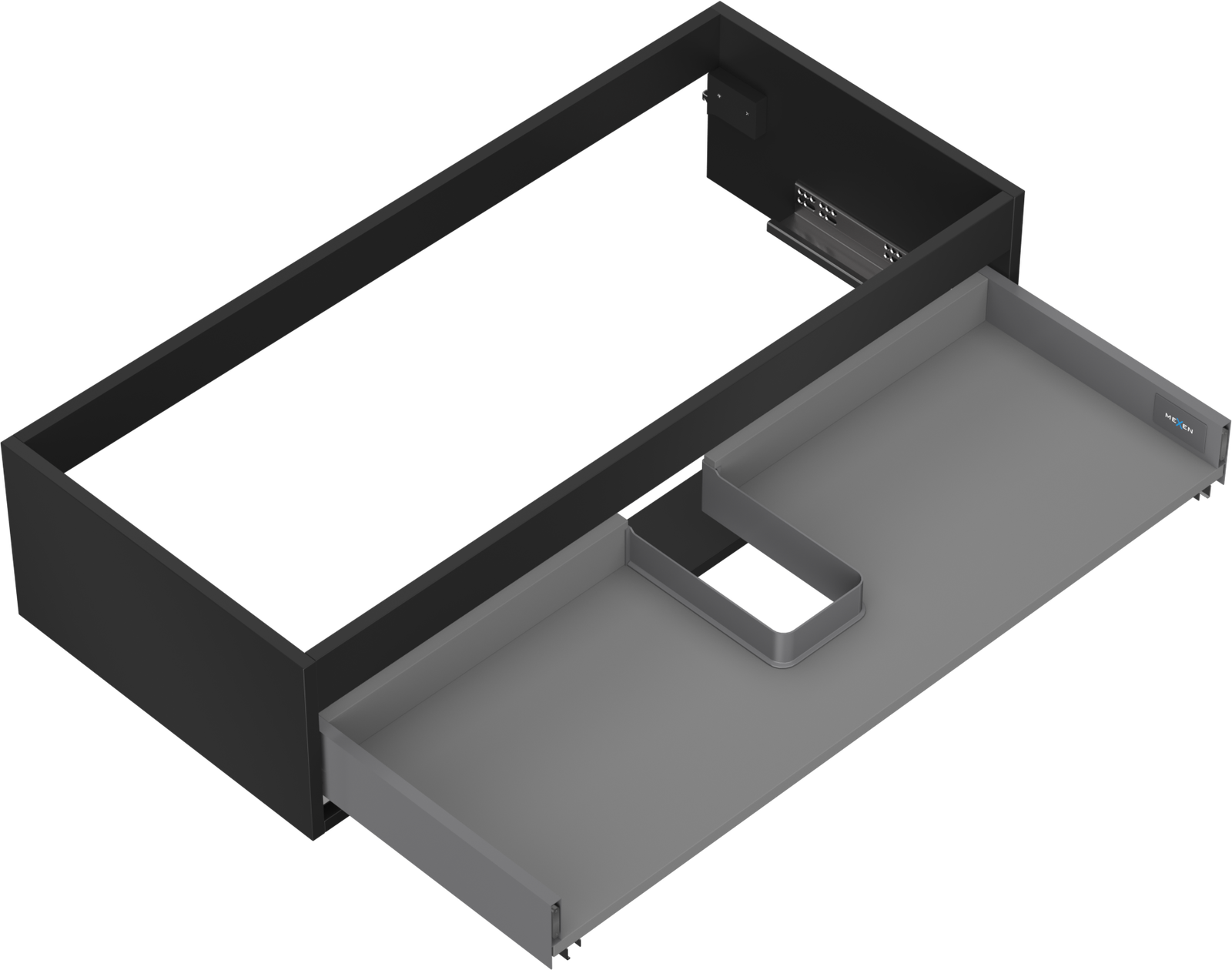 Decupajul în sertar este proiectat în așa fel încât să acomodeze sifonul, care este esențial în instalațiile de lavoare. Datorită acestui fapt, mobila poate fi montată complet funcțională, fără a fi necesară renunțarea la spațiul din sertar în favoarea instalației.