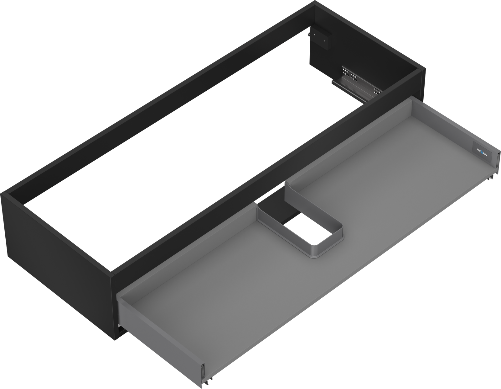 Decupajul în sertar este proiectat în așa fel încât să acomodeze sifonul, care este esențial în instalațiile de lavoare. Datorită acestui fapt, mobila poate fi montată complet funcțională, fără a fi necesară renunțarea la spațiul din sertar în favoarea instalației.