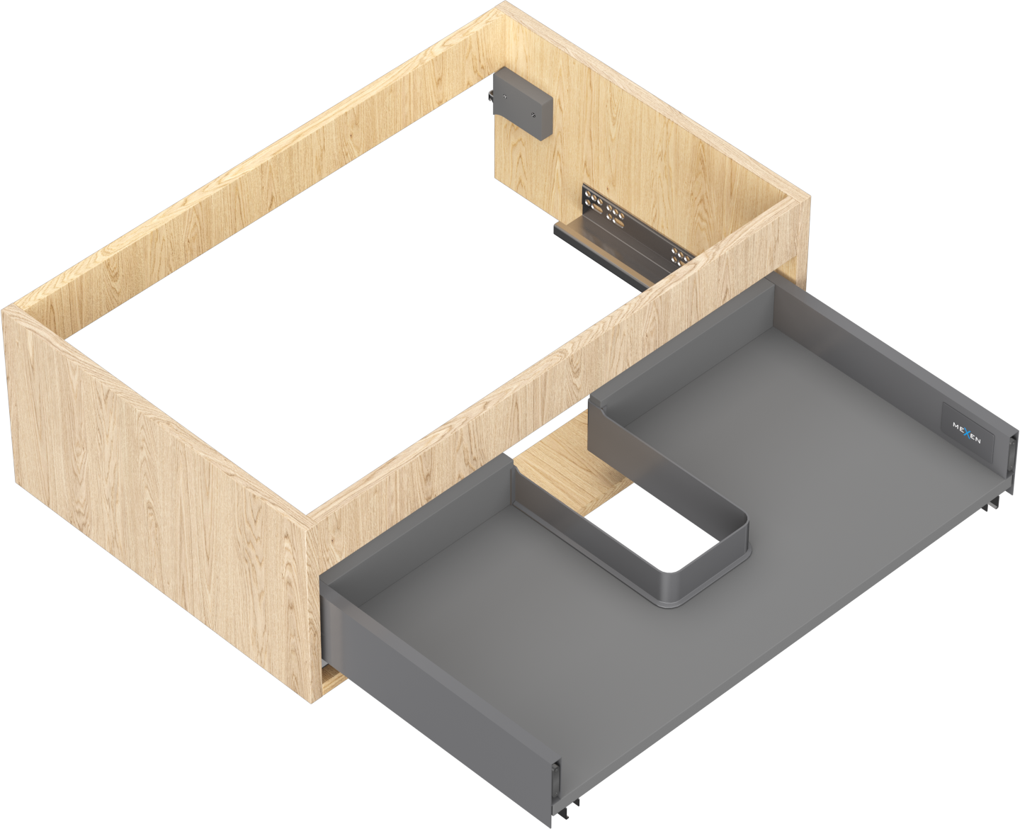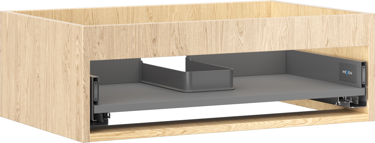 Decupajul în sertar este proiectat în așa fel încât să acomodeze sifonul, care este esențial în instalațiile de lavoare. Datorită acestui fapt, mobila poate fi montată complet funcțională, fără a fi necesară renunțarea la spațiul din sertar în favoarea instalației.