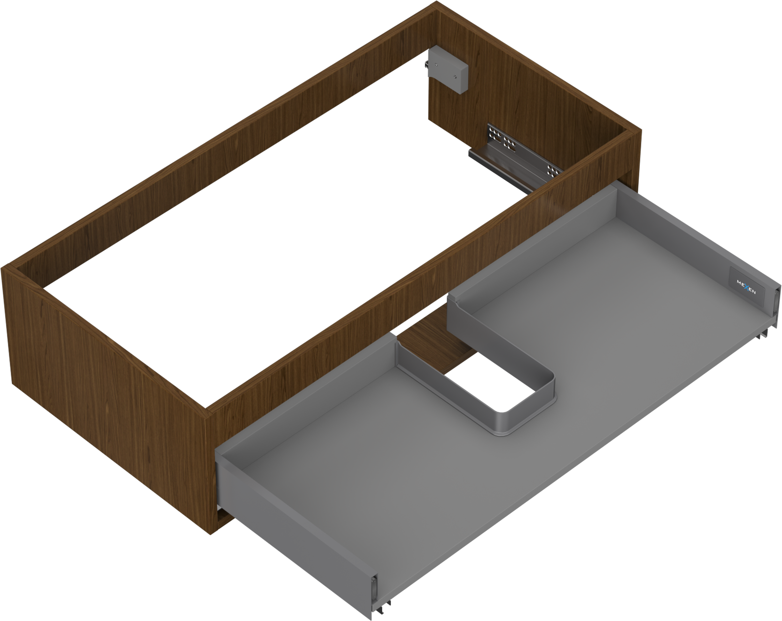 Decupajul în sertar este proiectat în așa fel încât să acomodeze sifonul, care este esențial în instalațiile de lavoare. Datorită acestui fapt, mobila poate fi montată complet funcțională, fără a fi necesară renunțarea la spațiul din sertar în favoarea instalației.