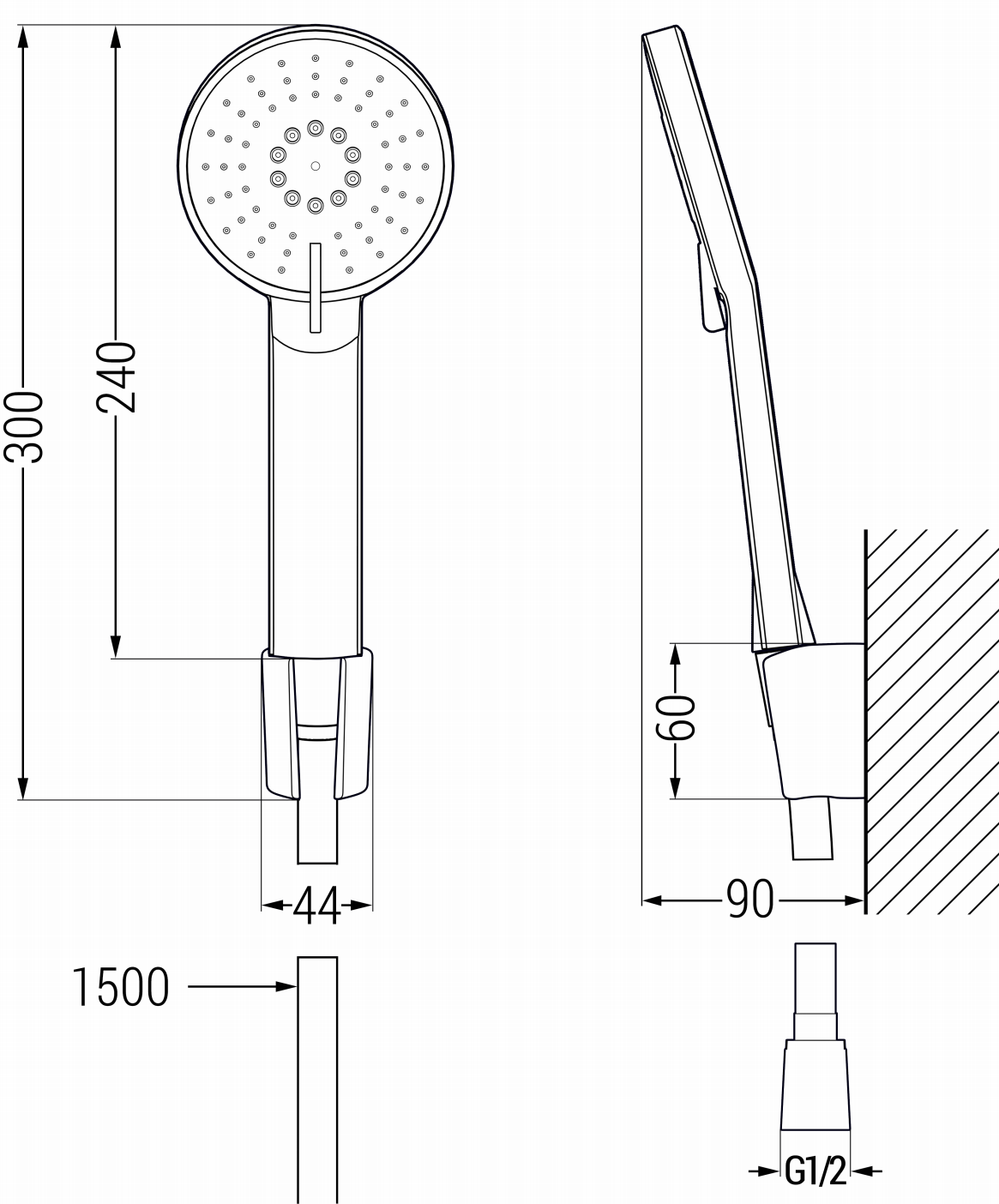 Mânerul de duș are trei tipuri de jeturi, schimbate cu ajutorul unui comutator. Oferă libertate totală și posibilitatea de adaptare la nevoile utilizatorului, oferind un jet delicat sau mai puternic și mai concentrat de apă.