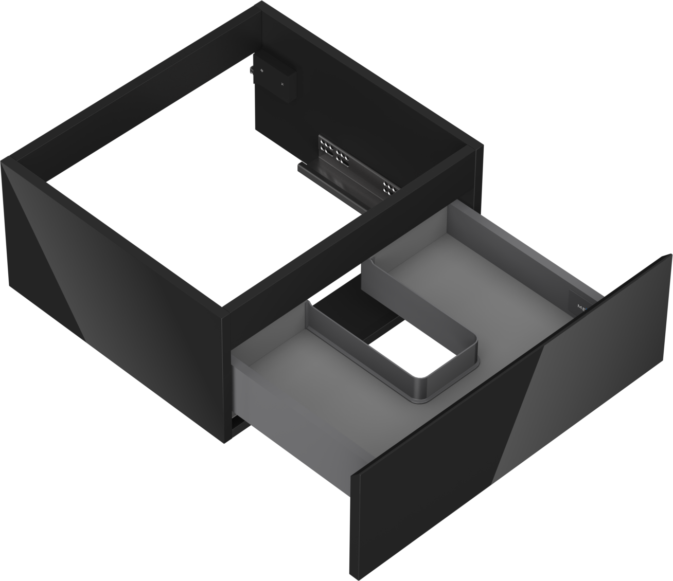 Decupajul în sertar este proiectat în așa fel încât să acomodeze sifonul, care este esențial în instalațiile de lavoare. Datorită acestui fapt, mobila poate fi montată complet funcțională, fără a fi necesară renunțarea la spațiul din sertar în favoarea instalației.