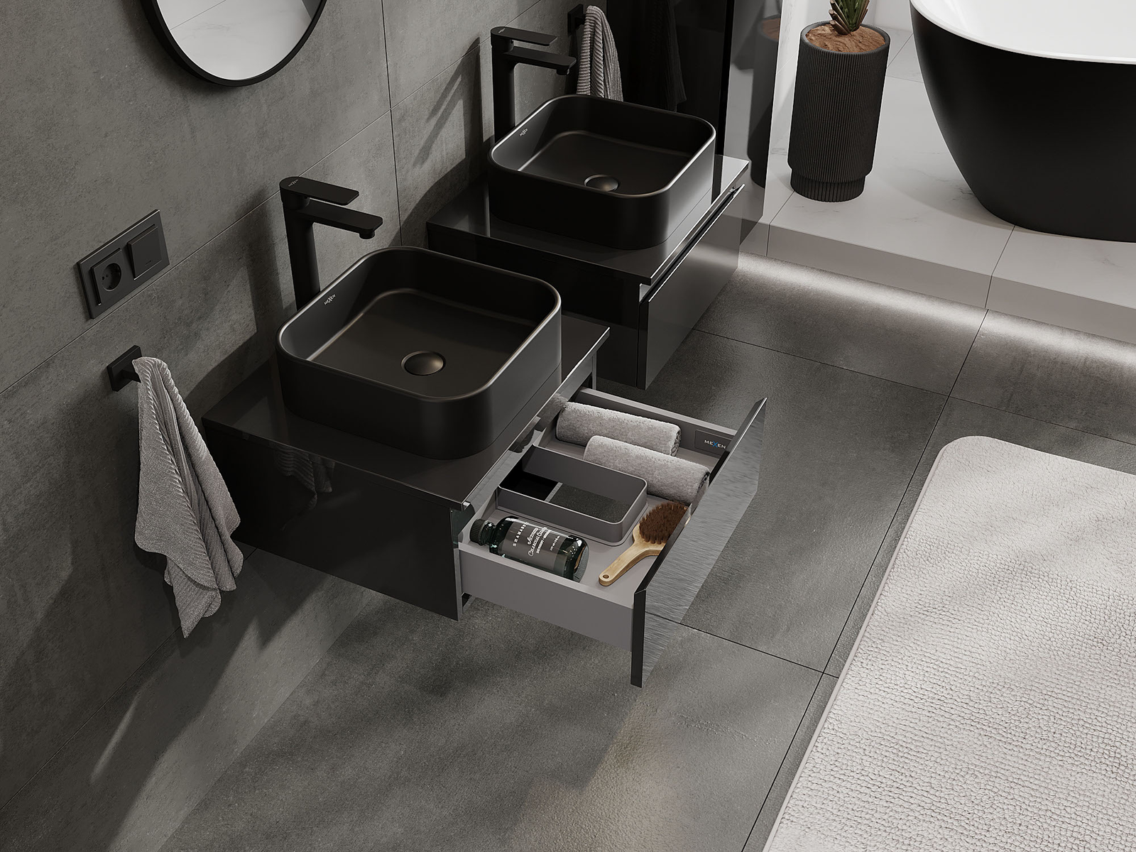 Mobilierul nostru modular pentru baie poate fi combinat în diverse configurații de culori, permițând personalizarea completă. Puteți alege atât aspectul, cât și funcțiile fiecărui element, ceea ce permite adaptarea mobilierului la preferințele dvs. stilistice și funcționale.