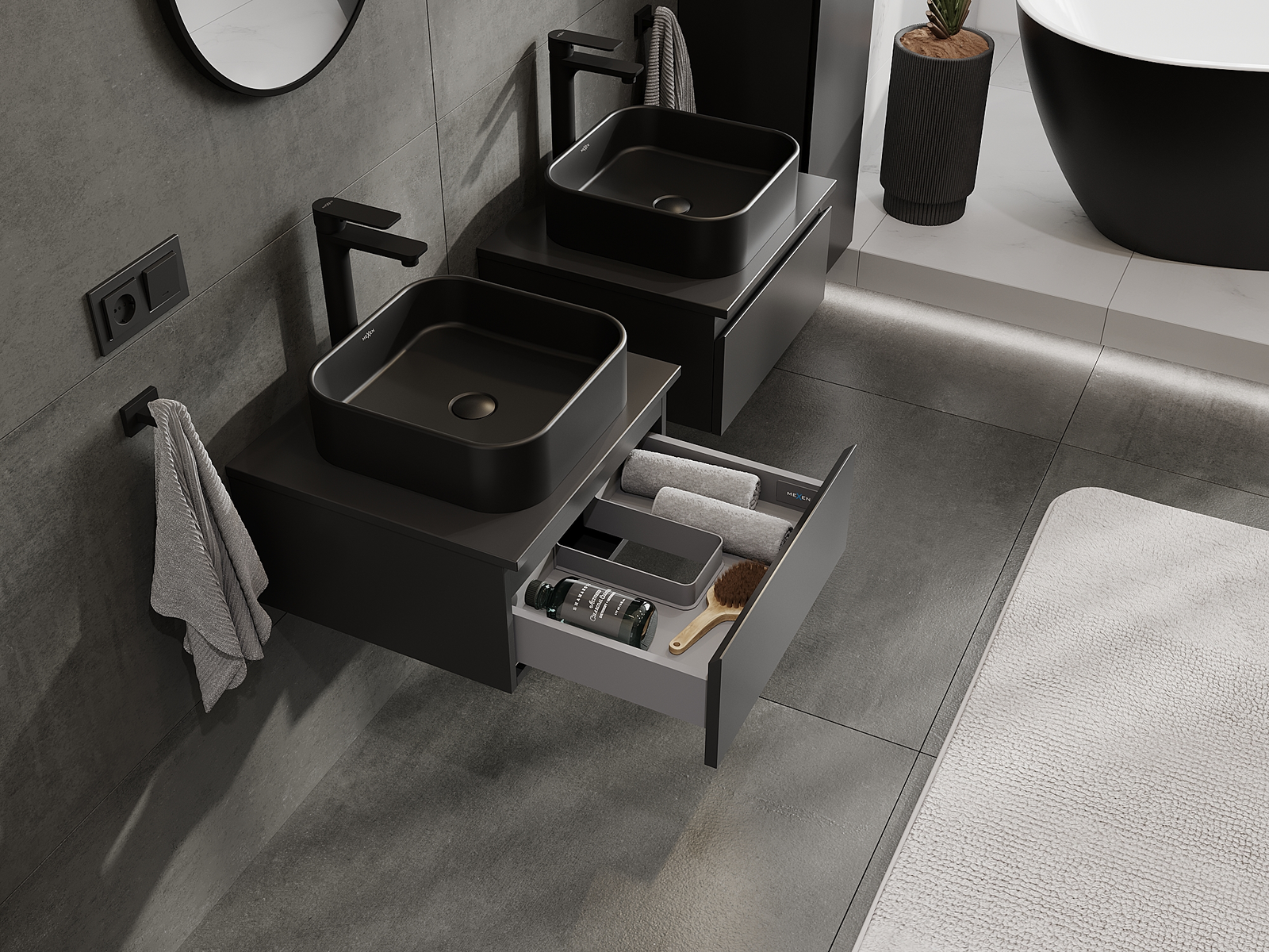 Mexen Orio dulap baie pentru chiuvetă 50 cm, 1 sertar, negru mat - 91A10-05023-1-BF71