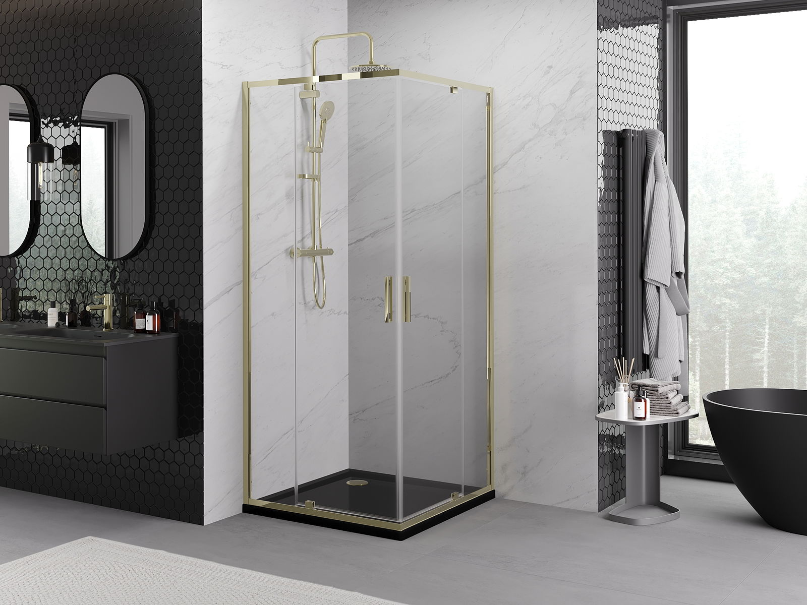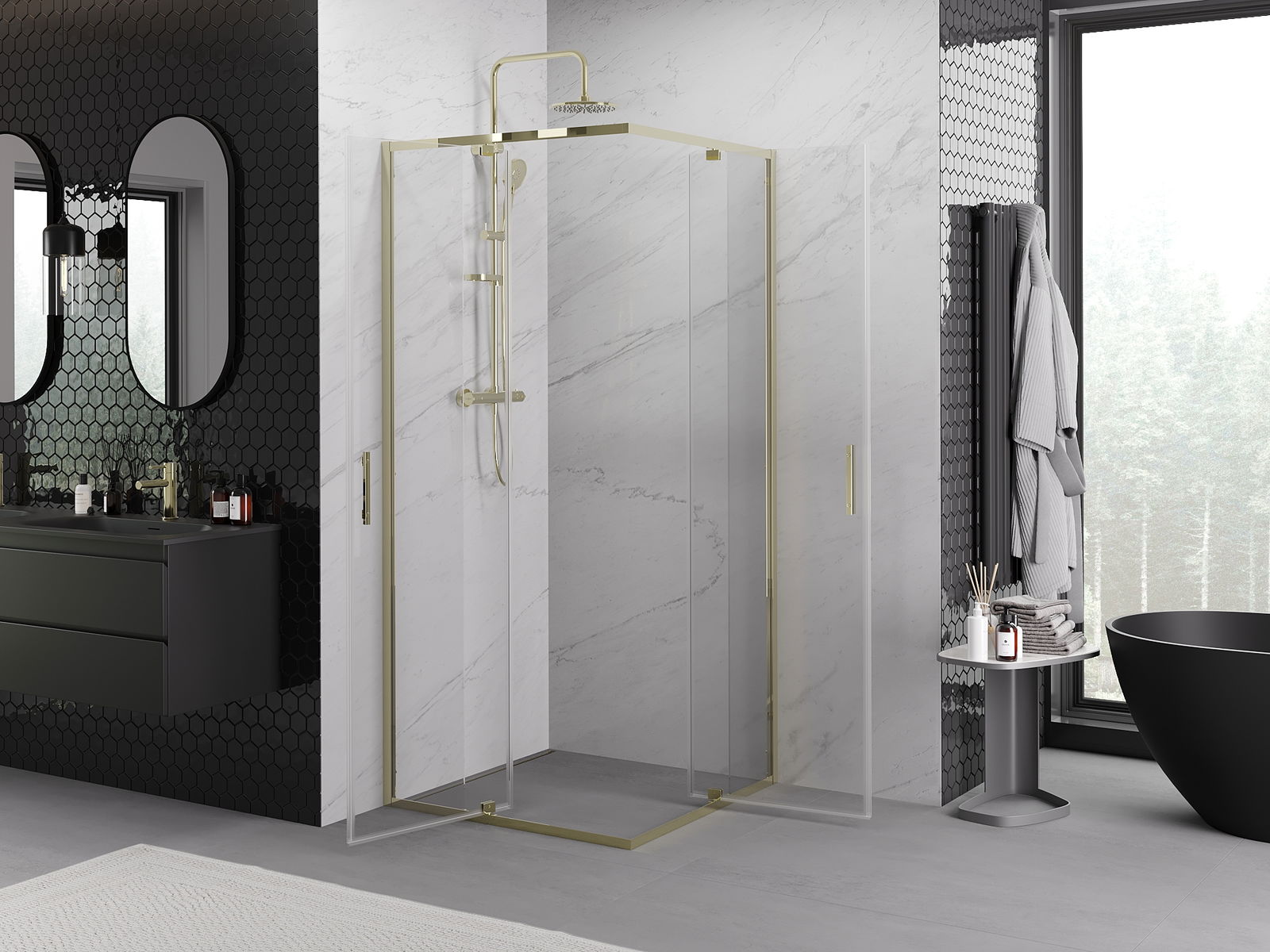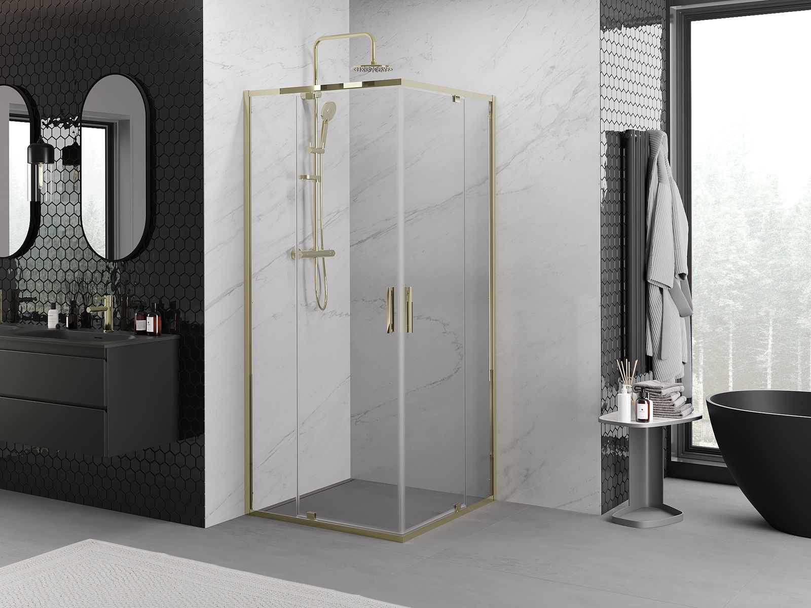 Mexen Exo cabina de duș pătrată cu ușă batantă 70 x 70 cm, transparentă, aurie - 8110-070-070-50-00