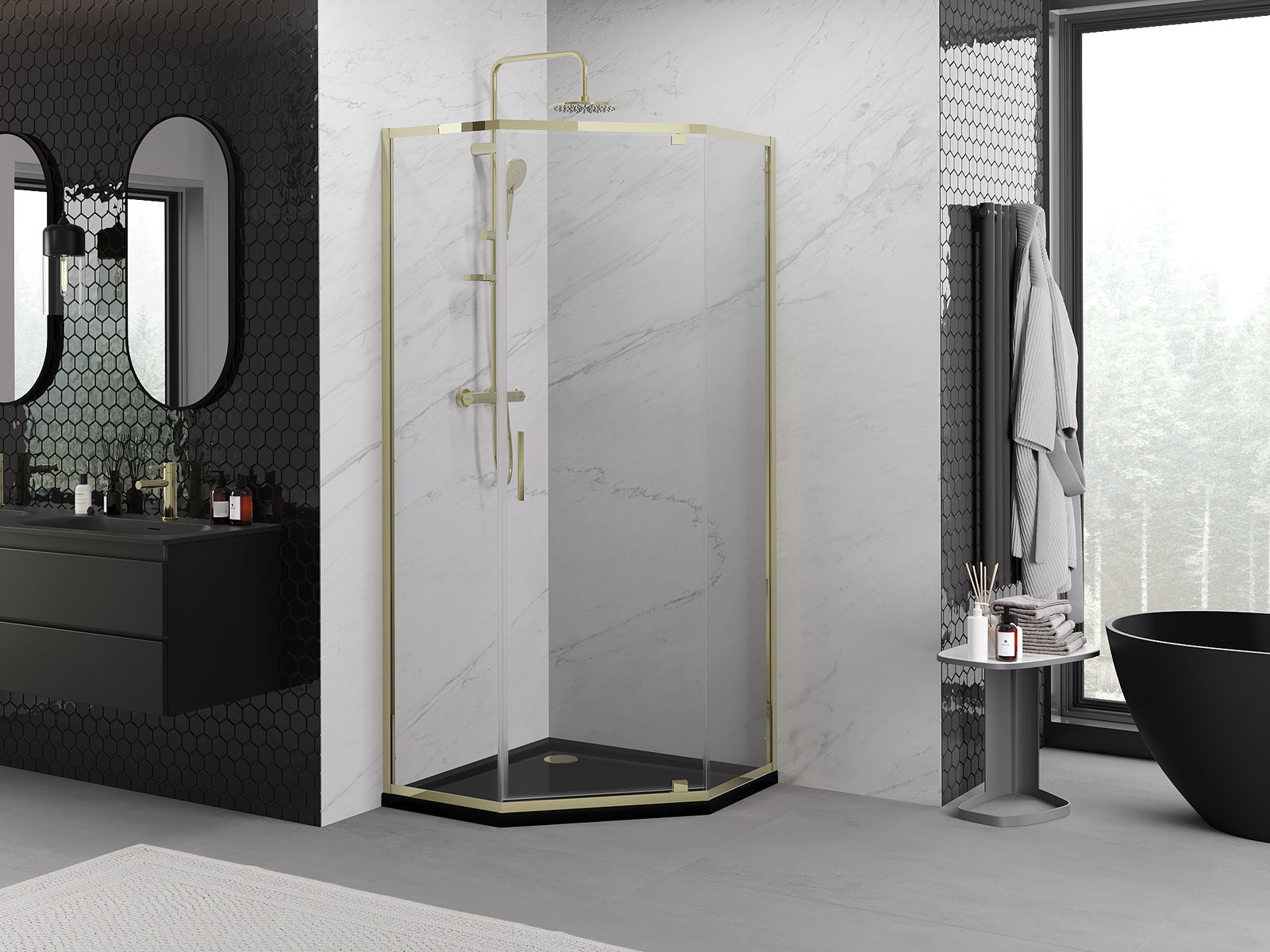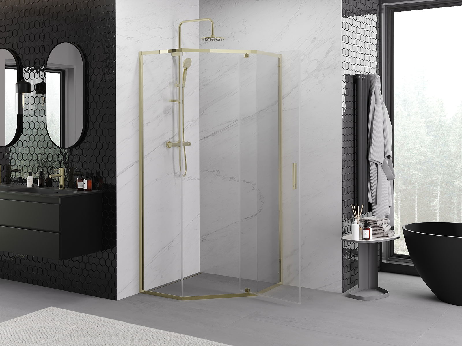 Mexen Exo cabină de duș pentagonală batantă 80 x 80 cm, transparent, auriu - 812-080-080-50-00