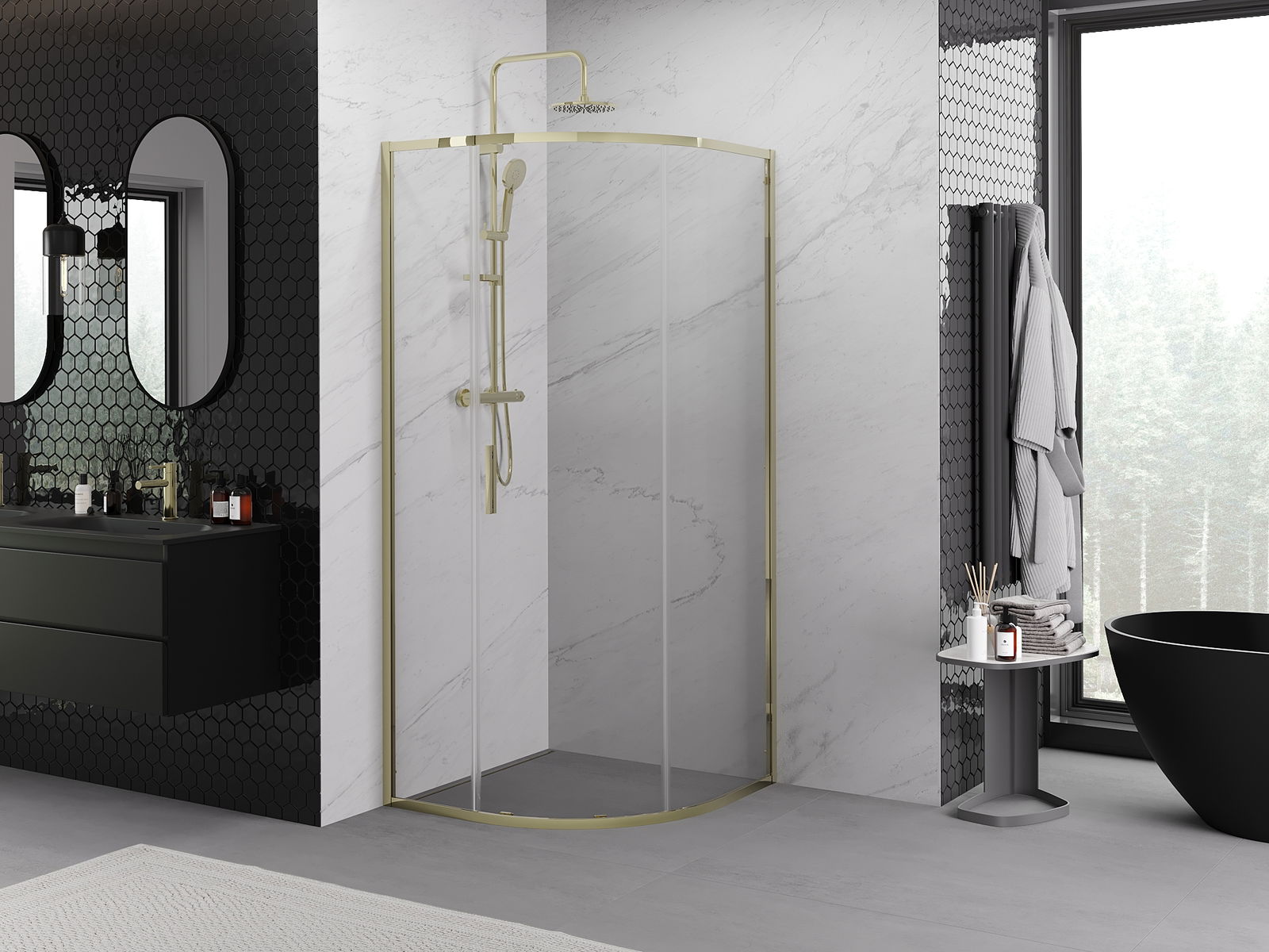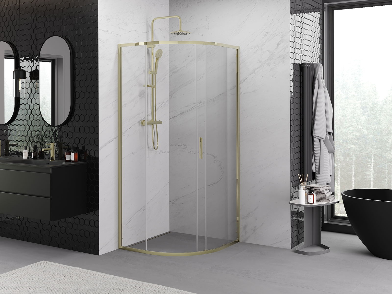 Mexen Exo cabina de duș semirotundă glisantă 70 x 70 cm, transparentă, aurie - 8131-070-070-50-00