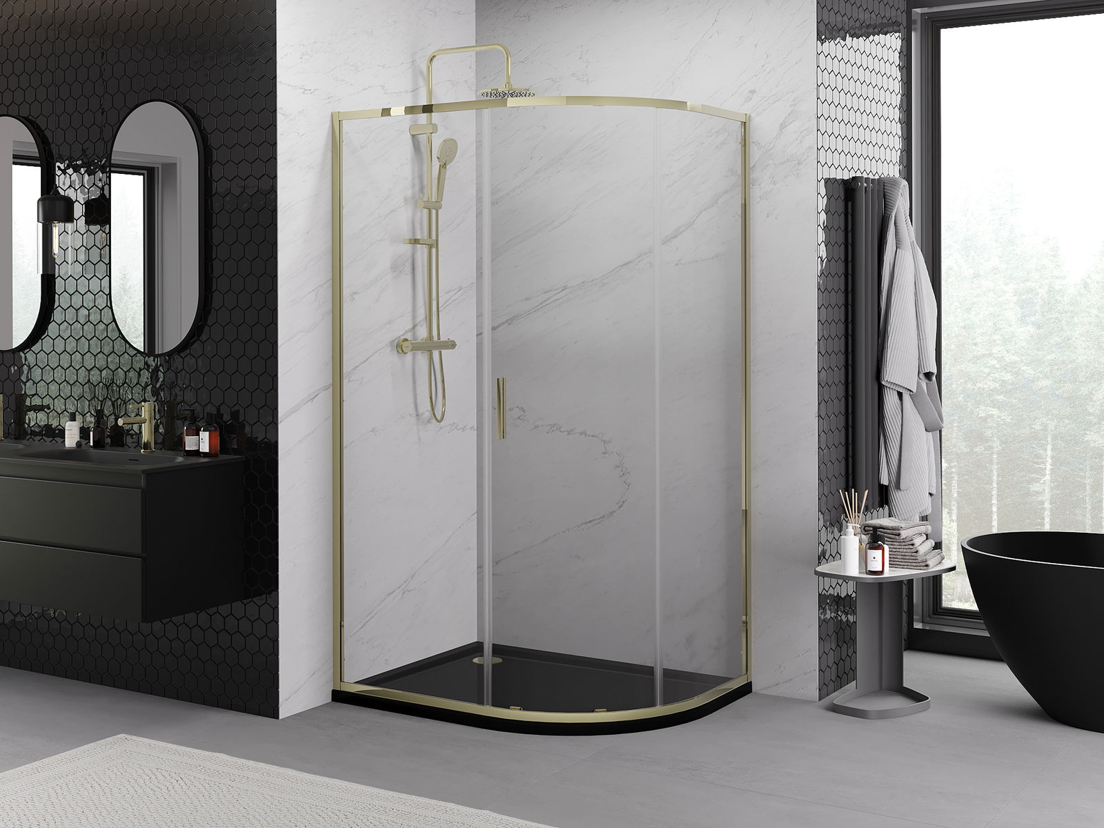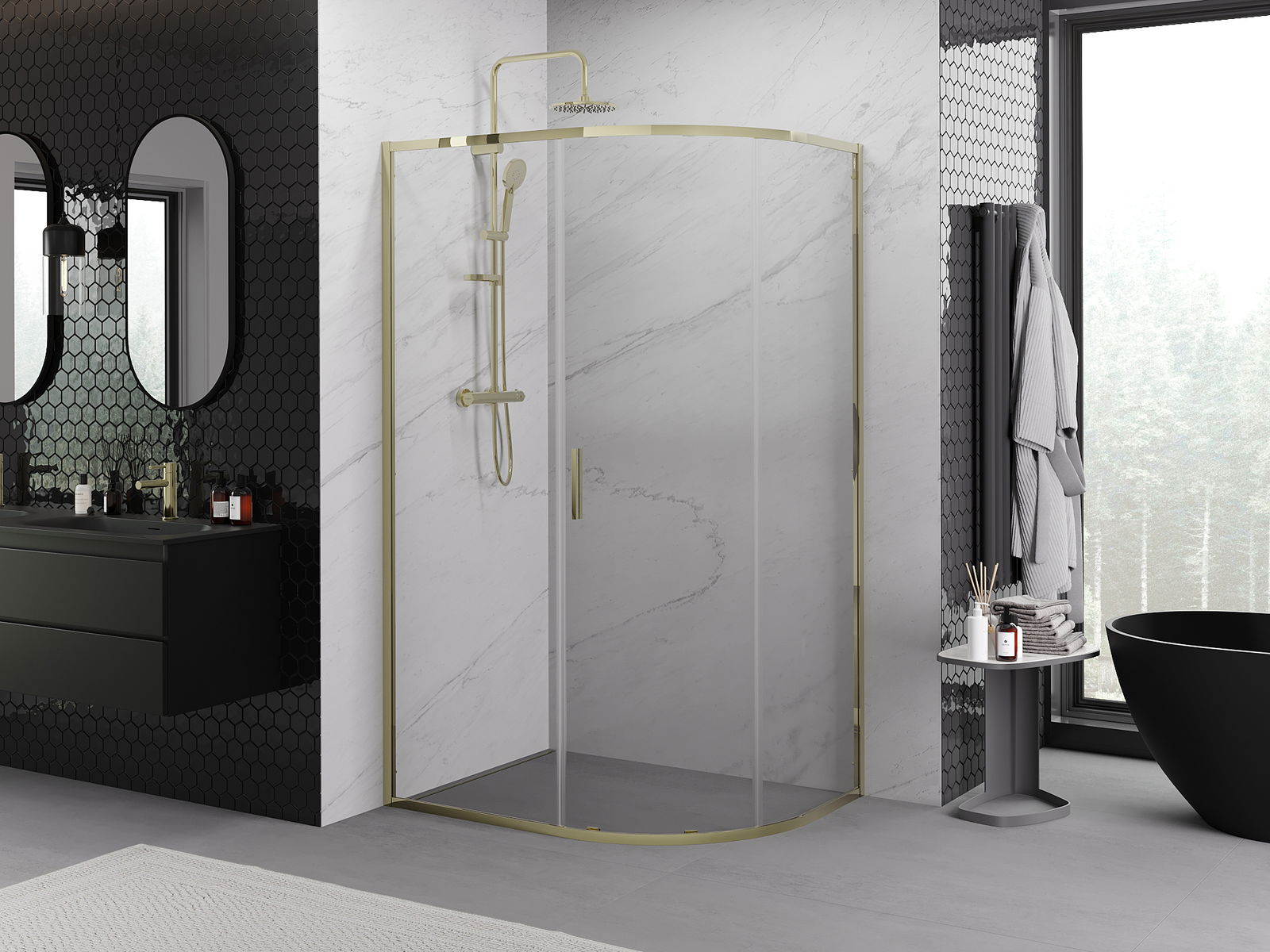 • Mexen Exo cabina de duș semicirculară asimetrică glisantă 120 x 90 cm, transparentă, aurie - 8131-120-090-50-00