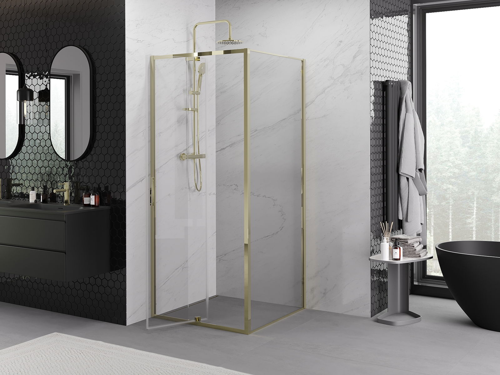 Mexen Exo cabină de duș pivotantă 100 x 100 cm, transparentă, aurie - 819-100-100-50-00