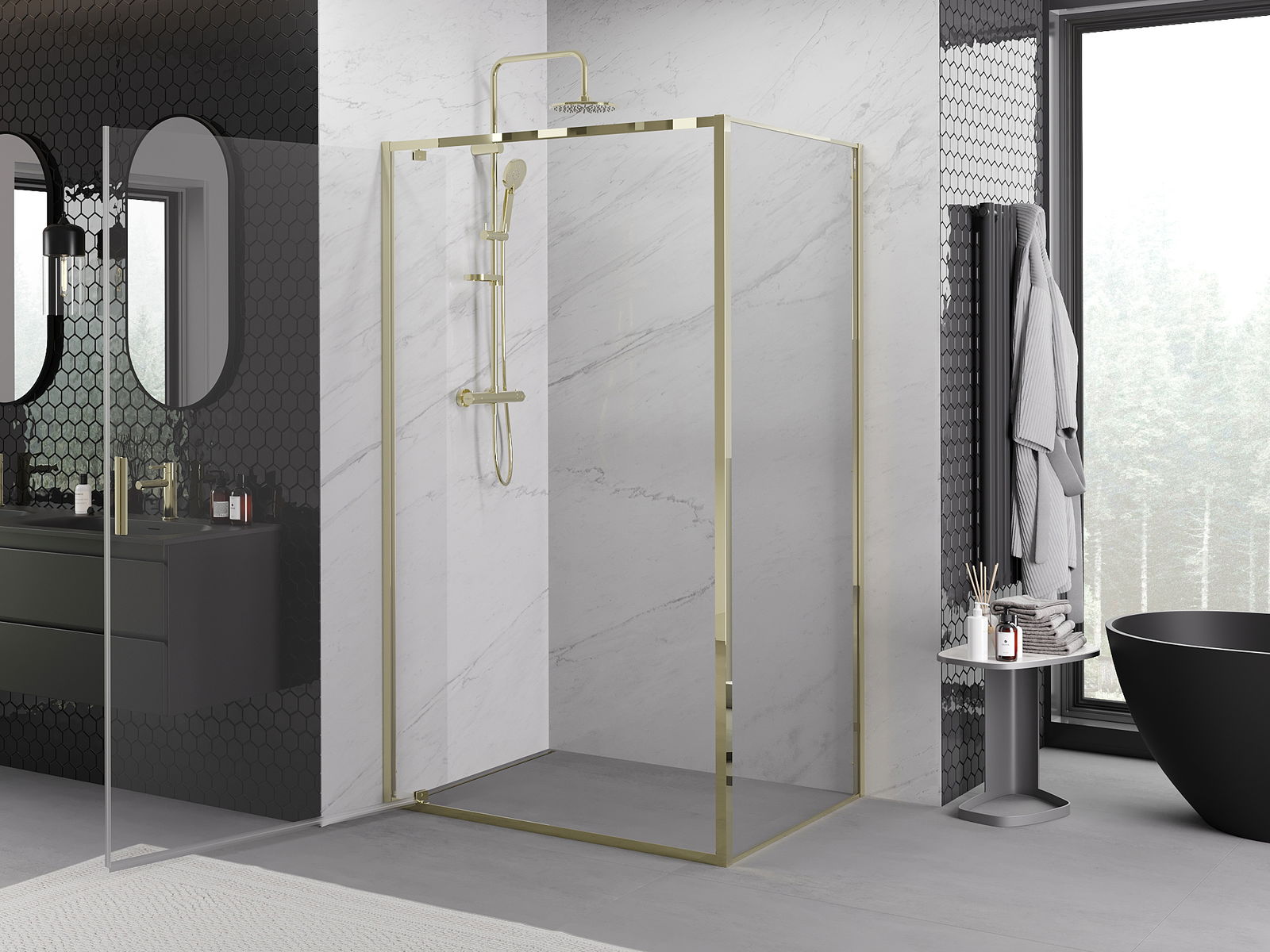 Mânerul practic și confortabil este realizat din metal durabil și rezistent. Forma modernă, combinată cu un finisaj asortat cu culoarea profilelor, conferă un aspect modern și elegant întregului, subliniind estetica fiecărei băi.