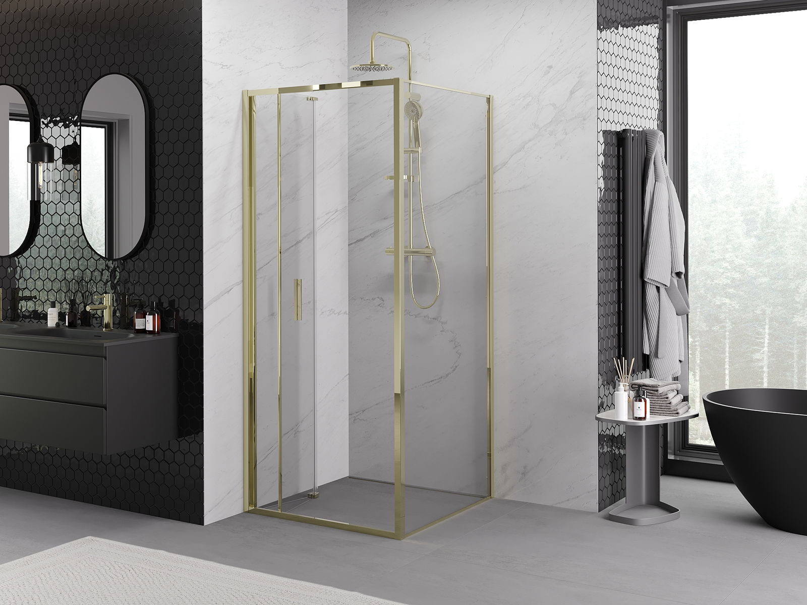 Mexen Exo cabină de duș pliabilă 75 x 75 cm, transparent, auriu - 816-075-075-50-00