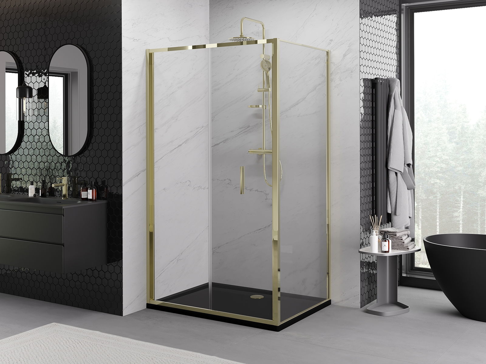 Mânerul practic și confortabil este realizat din metal durabil și rezistent. Forma modernă, combinată cu un finisaj asortat cu culoarea profilelor, conferă un aspect modern și elegant întregului, subliniind estetica fiecărei băi.