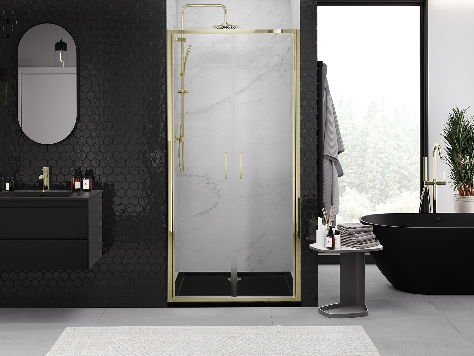 Mexen Exo uși de duș duble rabatabile 100 cm, transparent, aurii - 814-100-000-50-00
