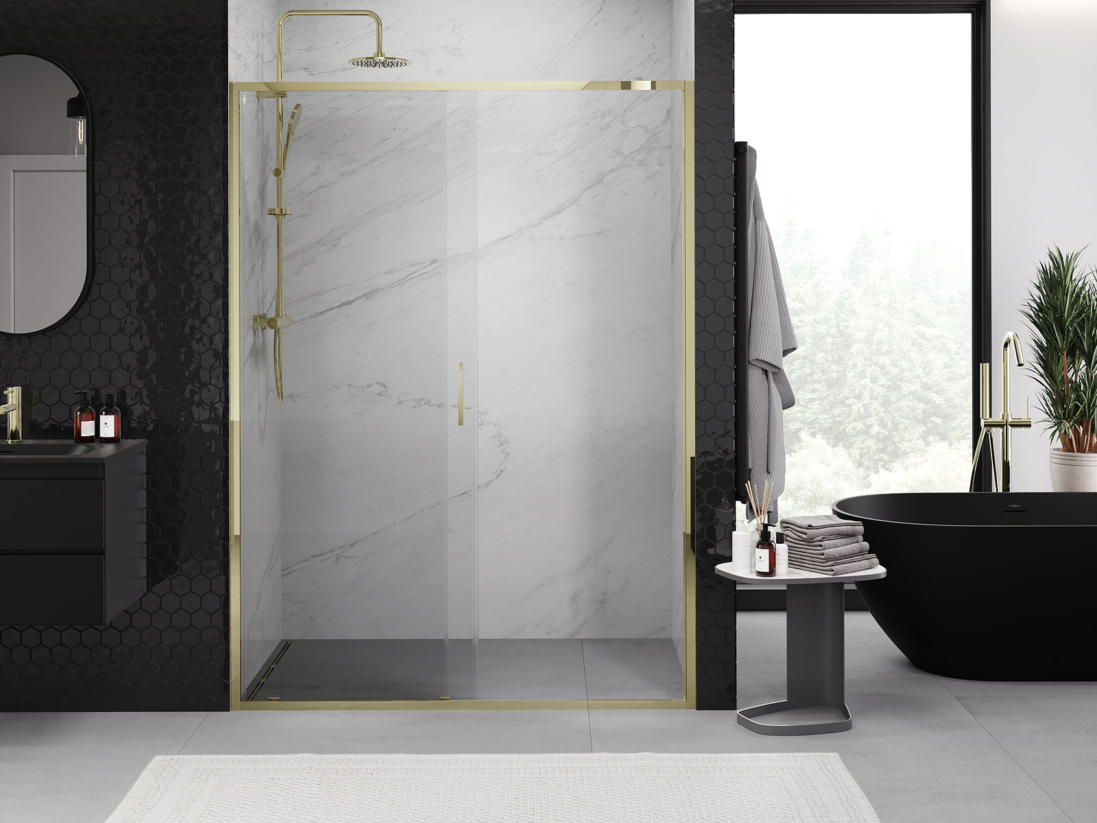 Mexen Exo uși de duș glisante 140 cm, transparente, aurii - 8151-140-000-50-00
