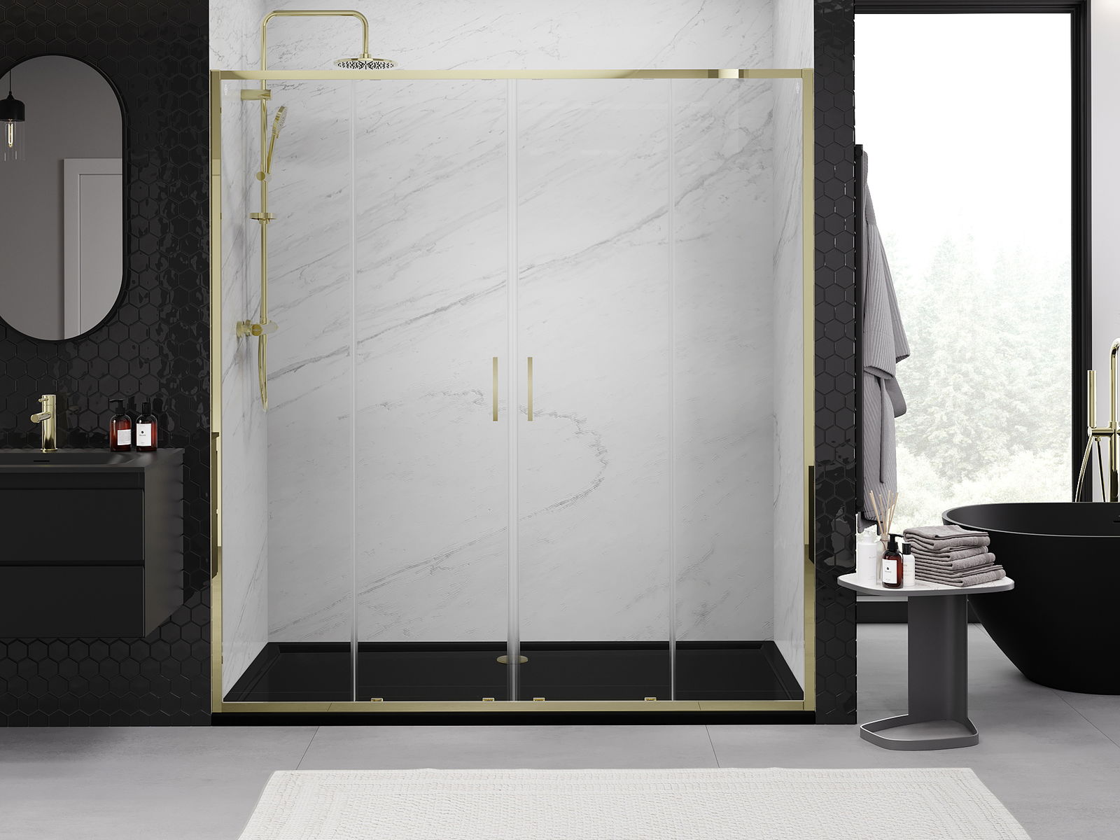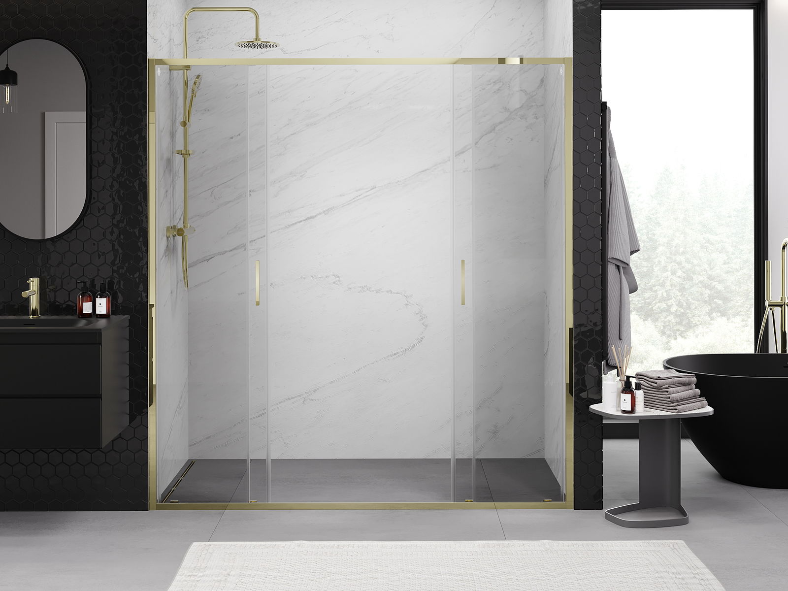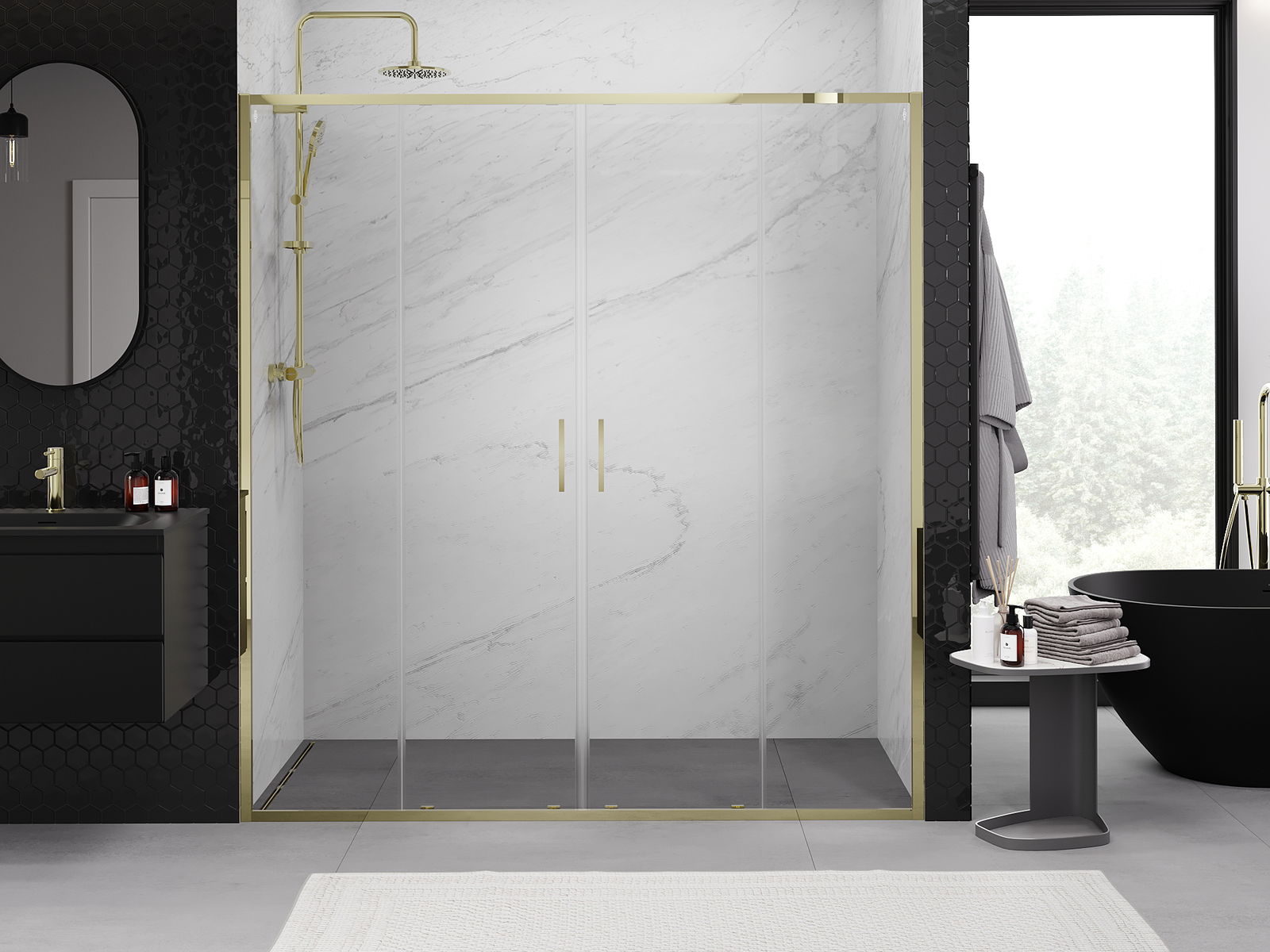 Mexen Exo uși de duș duble glisante 190 cm, transparente, aurii - 8152-190-000-50-00