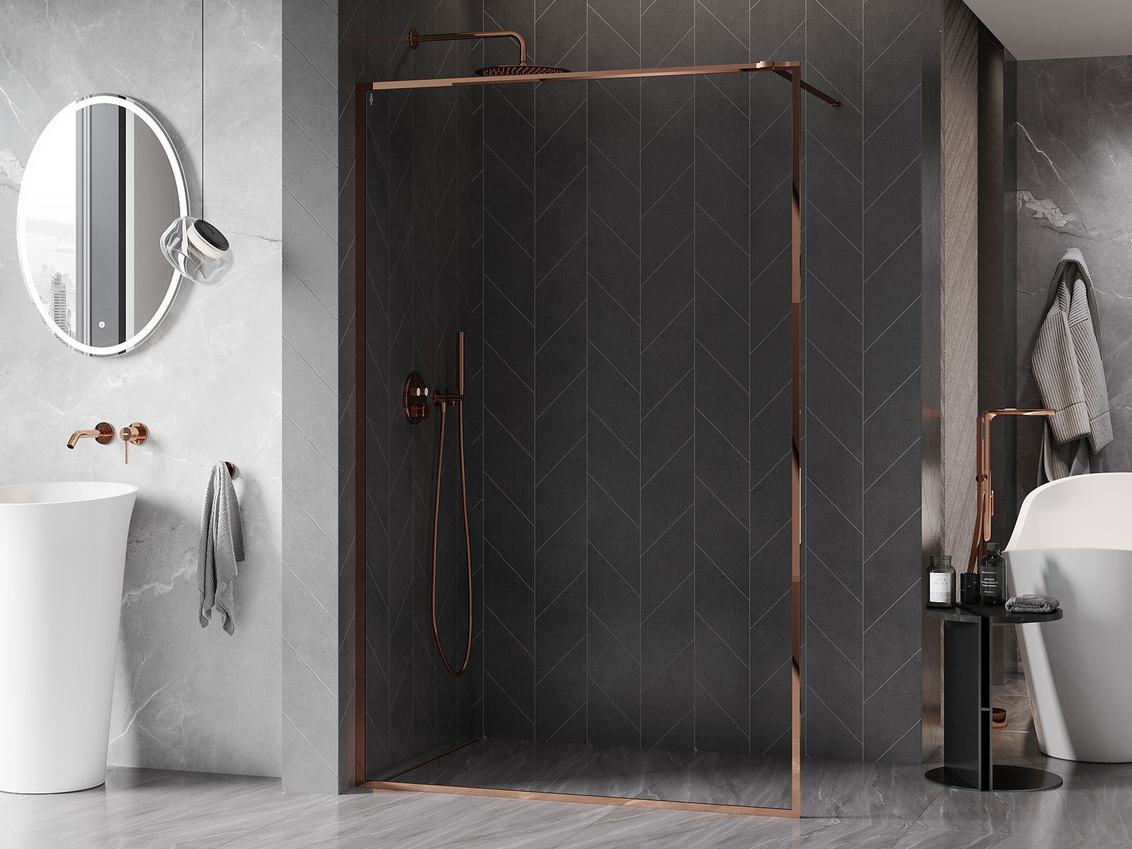Mexen Kioto-XF perete de duș Walk-in cu ramă 70 x 202 cm, transparent 10 mm, aur roz - 800-070-104-60-00-X