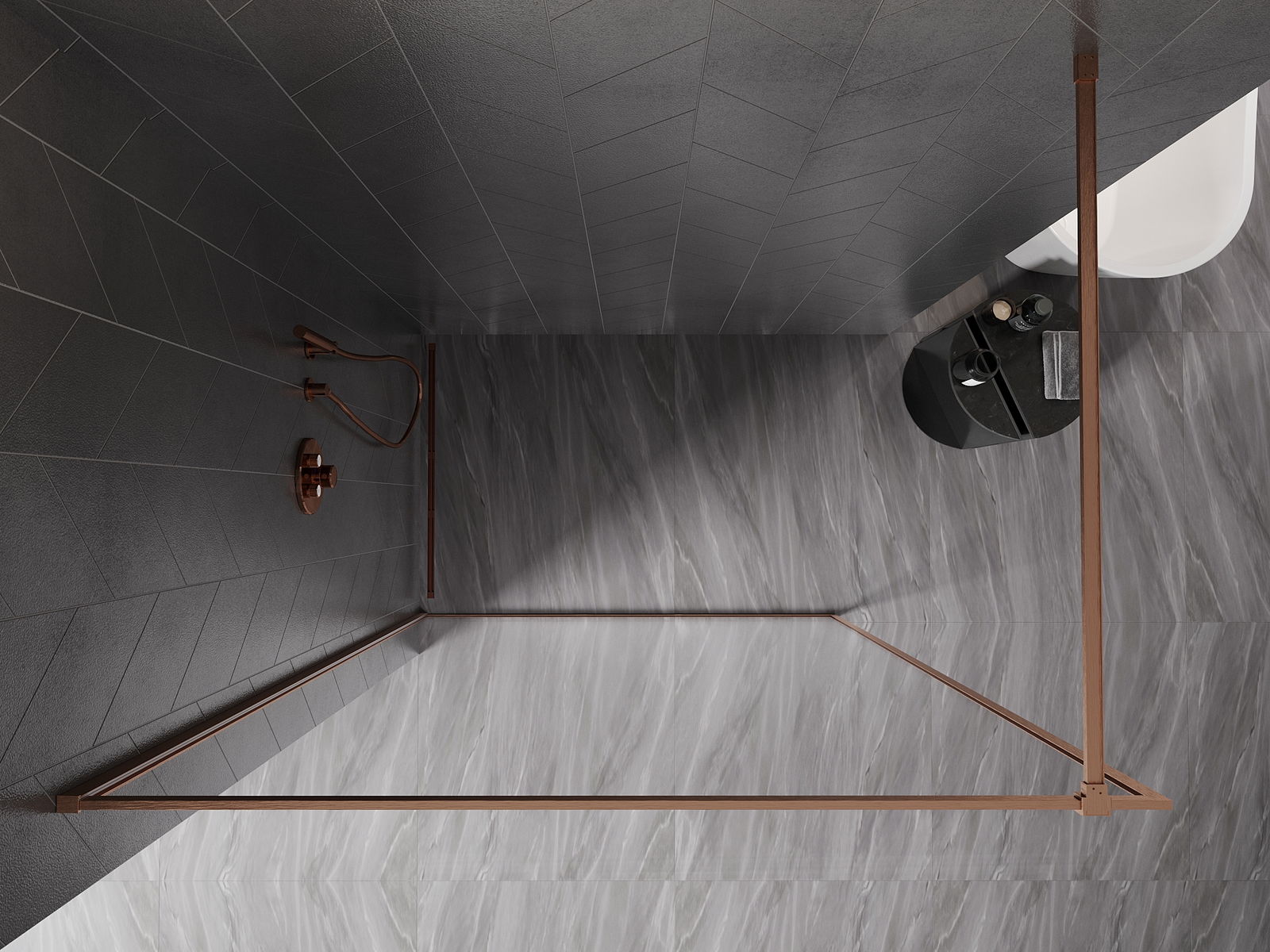 Mexen Kioto-XF panou de duș Walk-in cu ramă 120 x 202 cm, transparent 10 mm, cupru periat - 800-120-104-65-00-X