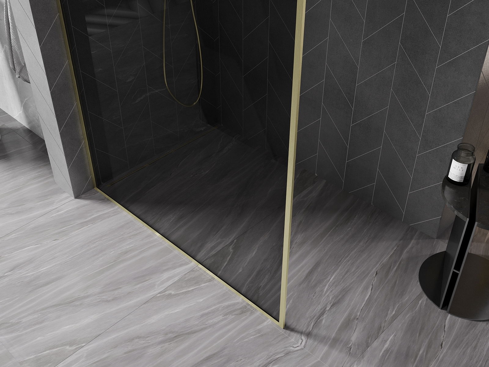 Mexen Kioto-XF perete de duș Walk-in cu cadru 60 x 202 cm, grafit 10 mm, auriu periat - 800-060-104-55-40-X