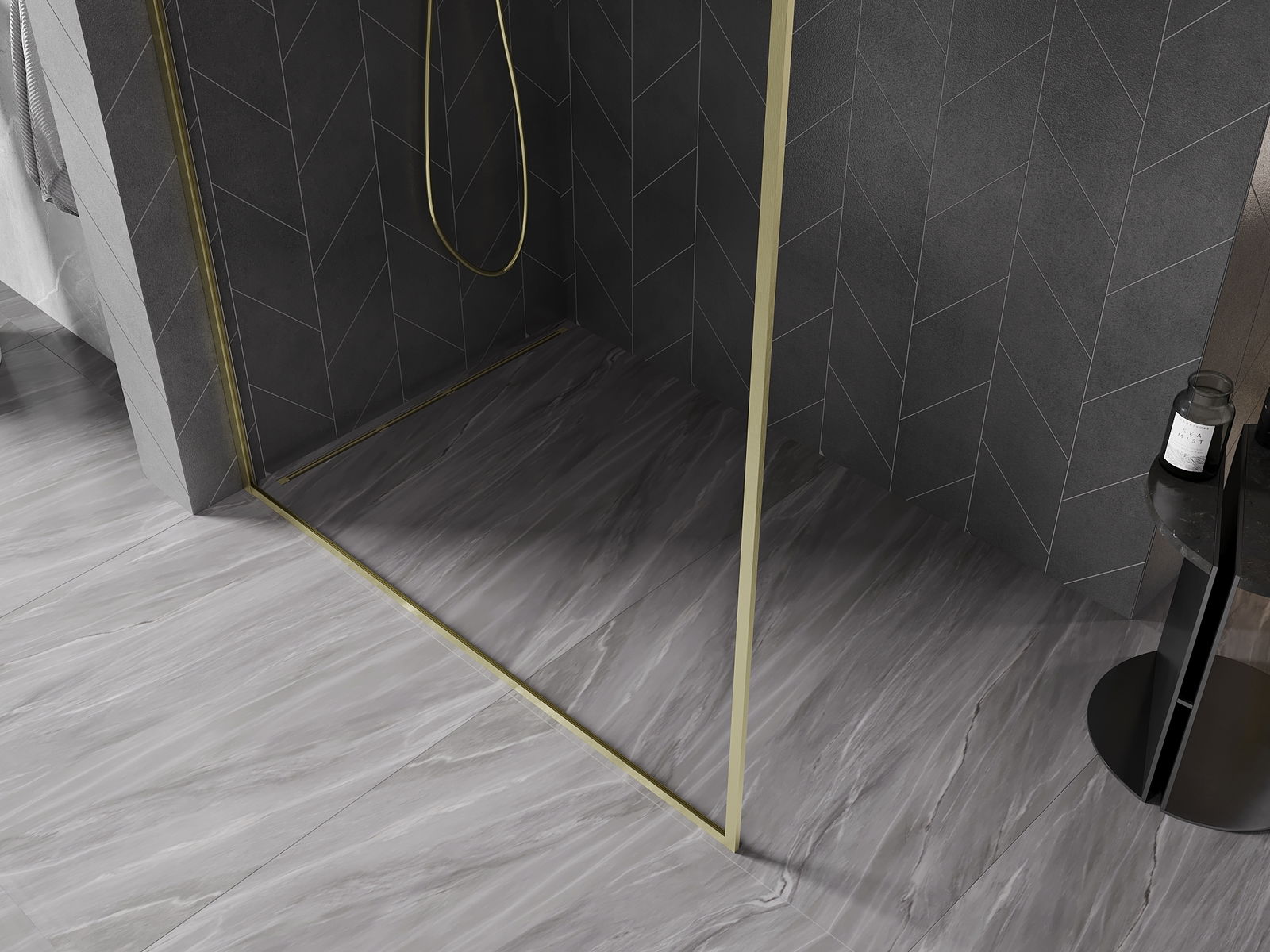 Mexen Kioto-F L Perete de duș Walk-in cu cadru 65 x 202 cm, transparent 8 mm, auriu periat - 800-065-174-55-00