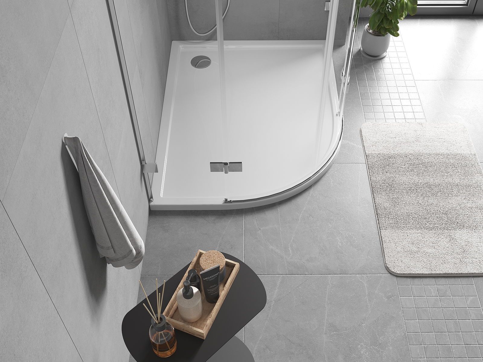 Tava de duș are un prag jos, ceea ce facilitează intrarea și ieșirea din duș. Adaugă o finisare excepțională și atemporală camerei, făcând baia un loc confortabil și estetic pentru relaxarea zilnică.