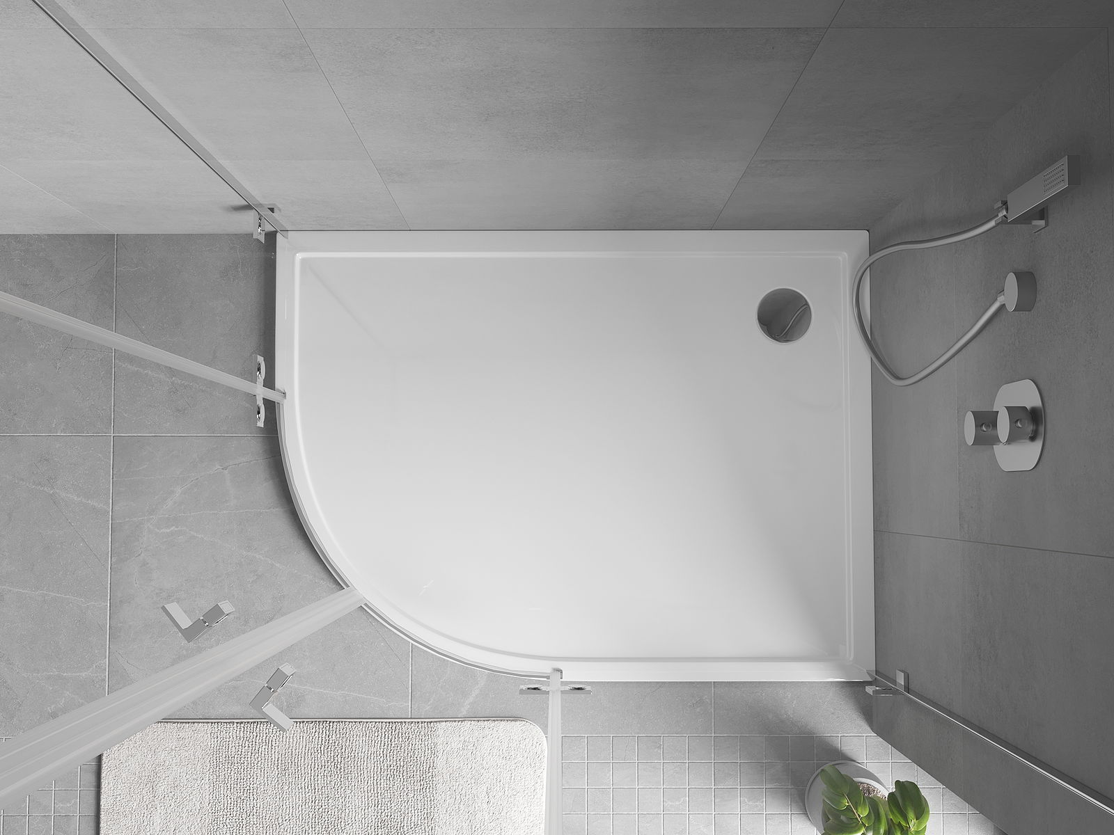 Cadă de duș a fost proiectată astfel încât apa să poată curge liber către evacuare. Asigură o drenare rapidă și eficientă a apei de pe suprafața căzii de duș, prevenind formarea bălților și inundarea băii.