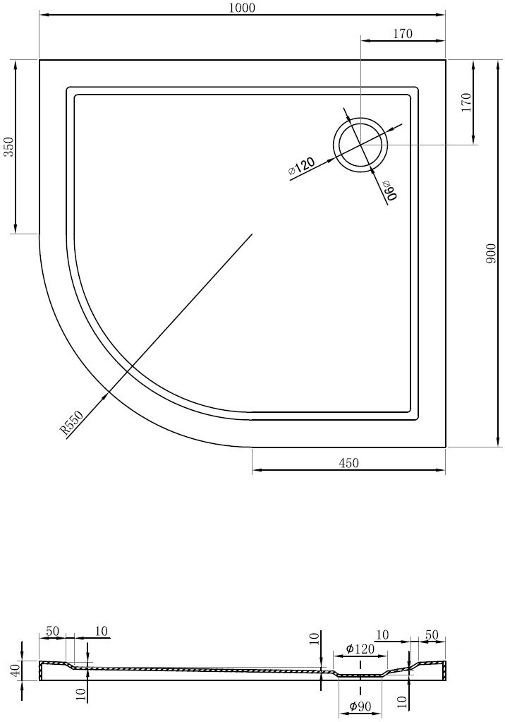 Cadă de duș a fost proiectată astfel încât apa să poată curge liber către evacuare. Asigură o drenare rapidă și eficientă a apei de pe suprafața căzii de duș, prevenind formarea bălților și inundarea băii.