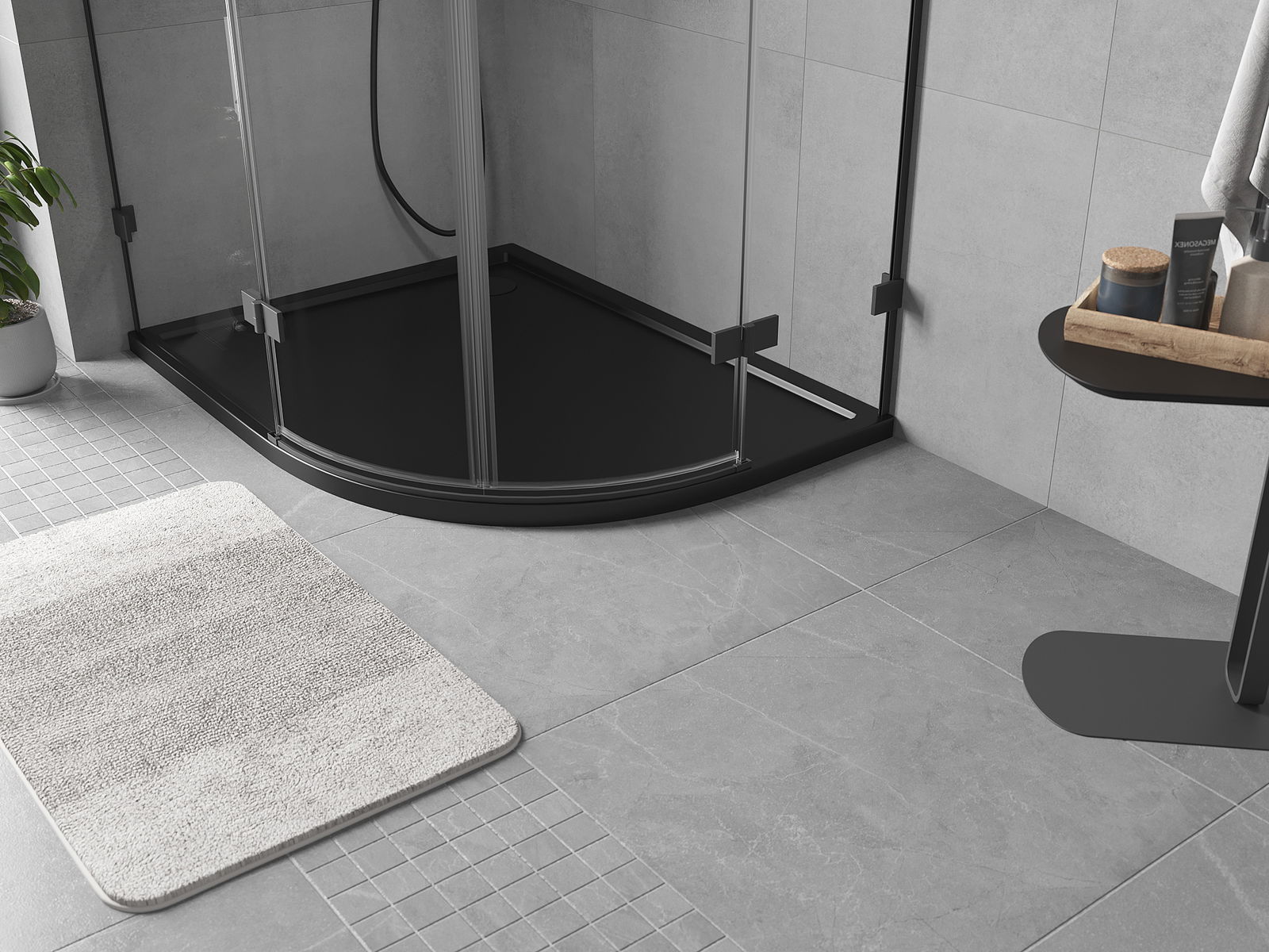 Mexen Flow cadă de duș semicirculară asimetrică slim stânga 100 x 80 cm, negru mat - 46Q708010L