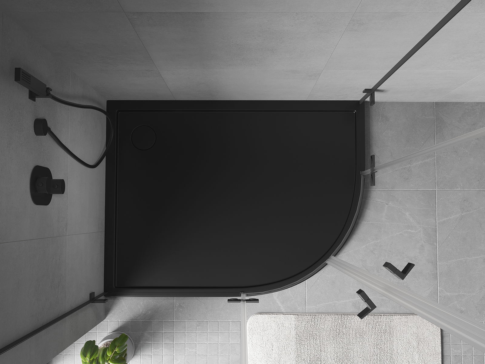 Mexen Flow cadă de duș semi-rotundă asimetrică slim stânga 100 x 90 cm, negru mat - 46Q709010L