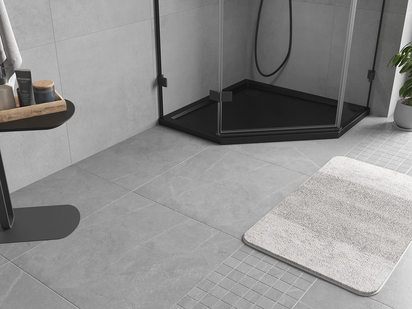 Mexen Flow brodzik pentagonal slim 80 x 80 cm, negru mat - 46P708080