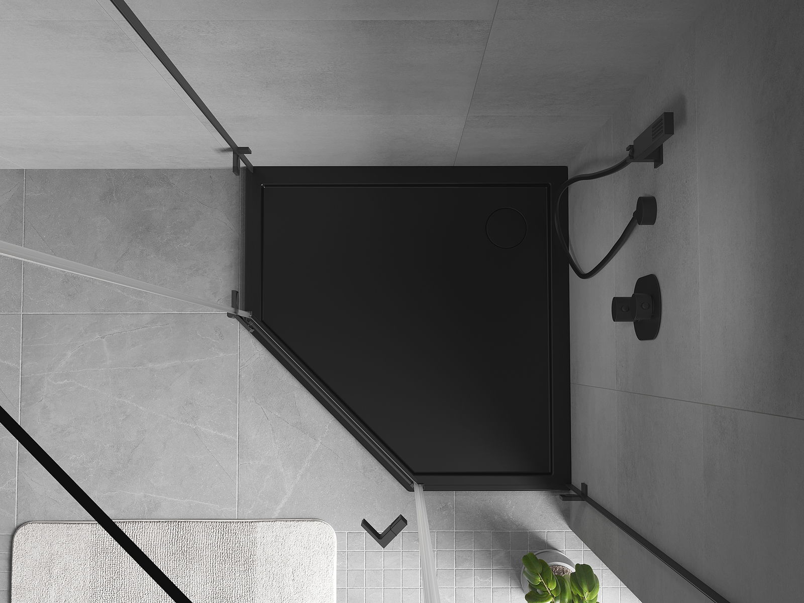 Mexen Flow cadă de duș pentagonală slim 90 x 90 cm, negru mat - 46P709090