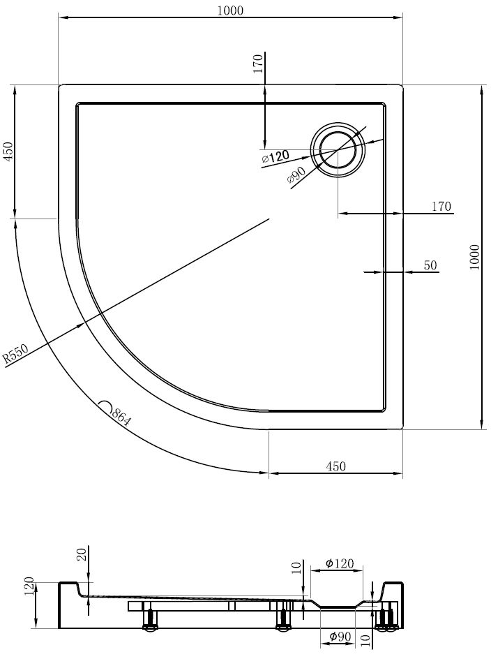 Cadă de duș a fost proiectată astfel încât apa să poată curge liber către evacuare. Asigură o drenare rapidă și eficientă a apei de pe suprafața căzii de duș, prevenind formarea bălților și inundarea băii.