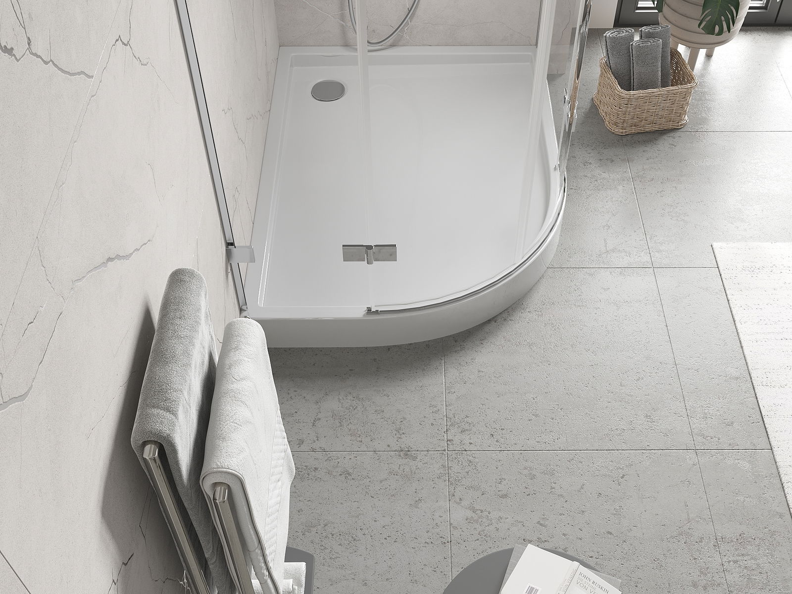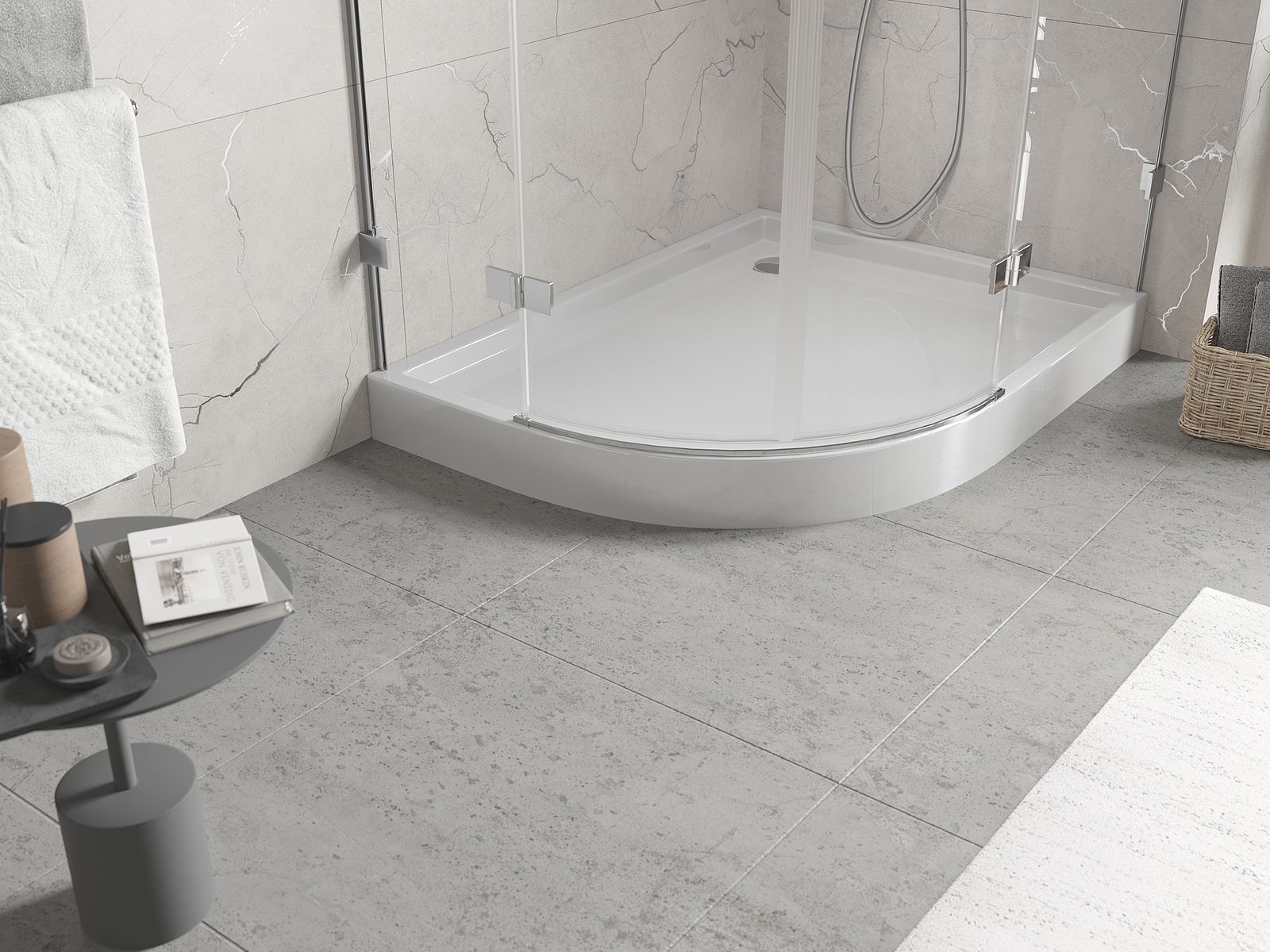 Cadă de duș a fost proiectată astfel încât apa să poată curge liber către evacuare. Asigură o drenare rapidă și eficientă a apei de pe suprafața căzii de duș, prevenind formarea bălților și inundarea băii.