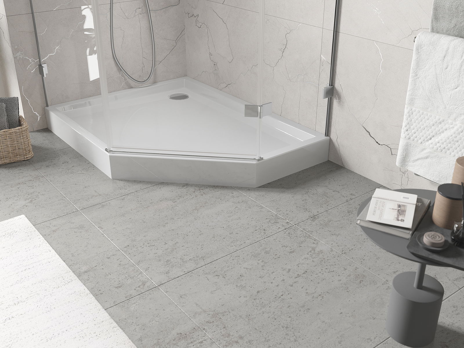 Cadă de duș a fost proiectată astfel încât apa să poată curge liber către evacuare. Asigură o drenare rapidă și eficientă a apei de pe suprafața căzii de duș, prevenind formarea bălților și inundarea băii.
