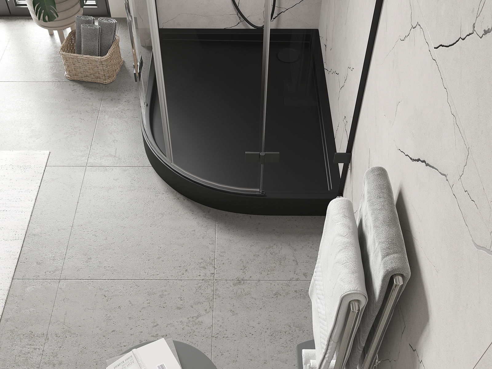 Mexen Flow+ cadă de duș semicirculară asimetrică stânga 90 x 80 cm, negru mat - 46Q708090LH