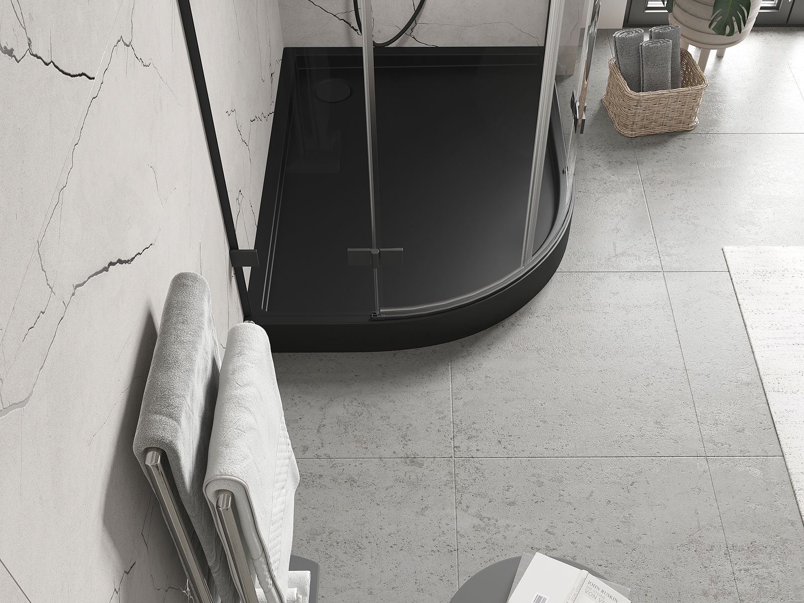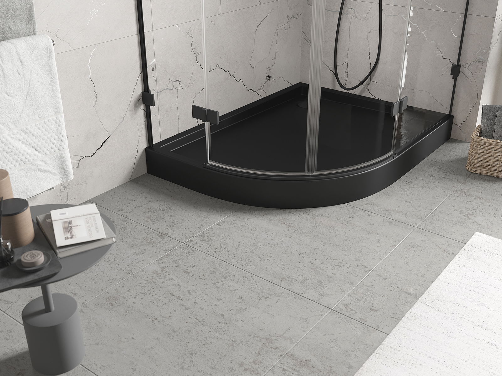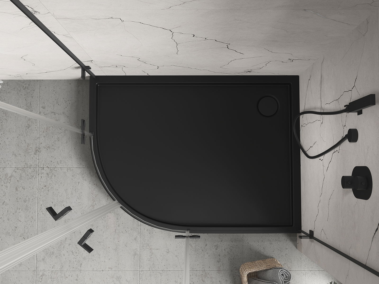 Mexen Flow+ cadă de duș semi-rotundă asimetrică dreaptă 90 x 80 cm, negru mat - 46Q708090RH