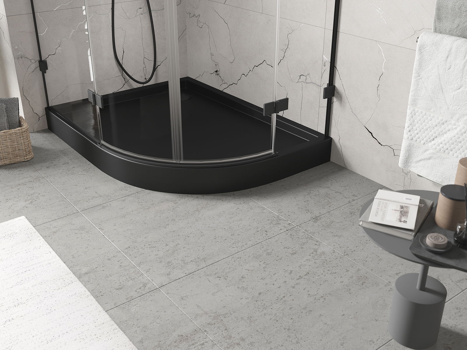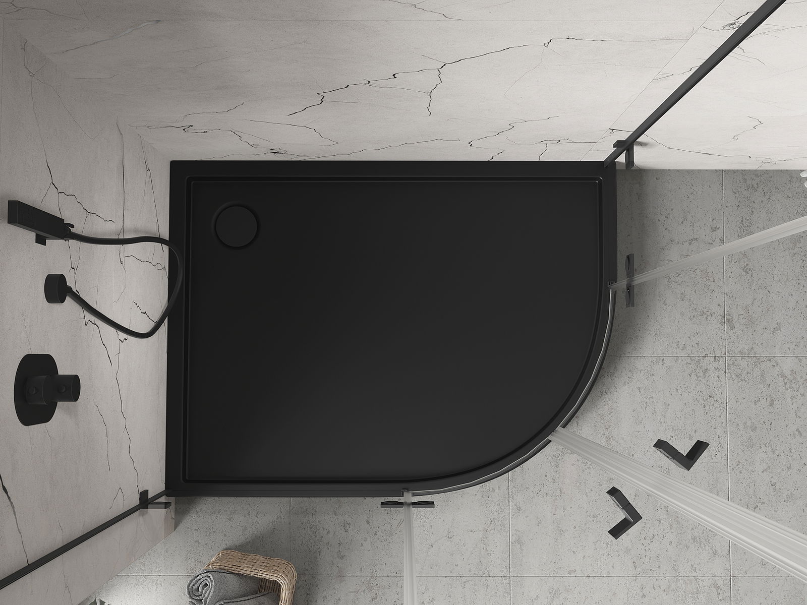 Mexen Flow+ cadă de duș semicirculară asimetrică stânga 100 x 80 cm, negru mat - 46Q708010LH