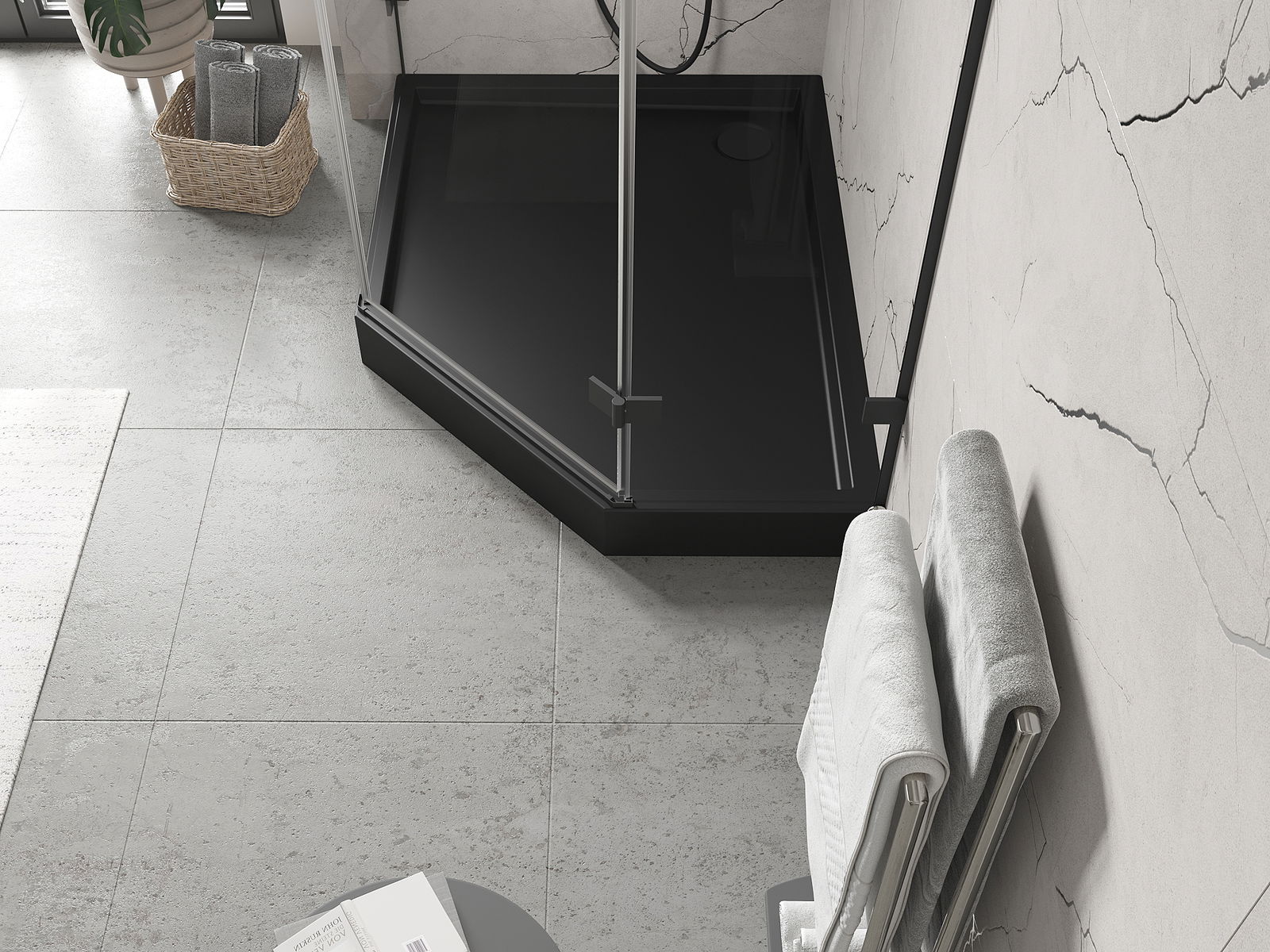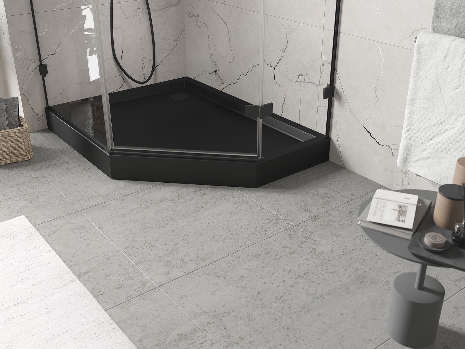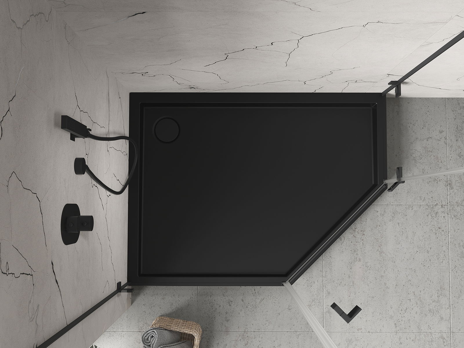 Mexen Flow+ cadă de duș pentagonală stânga 90 x 80 cm, negru mat - 46P708090LH