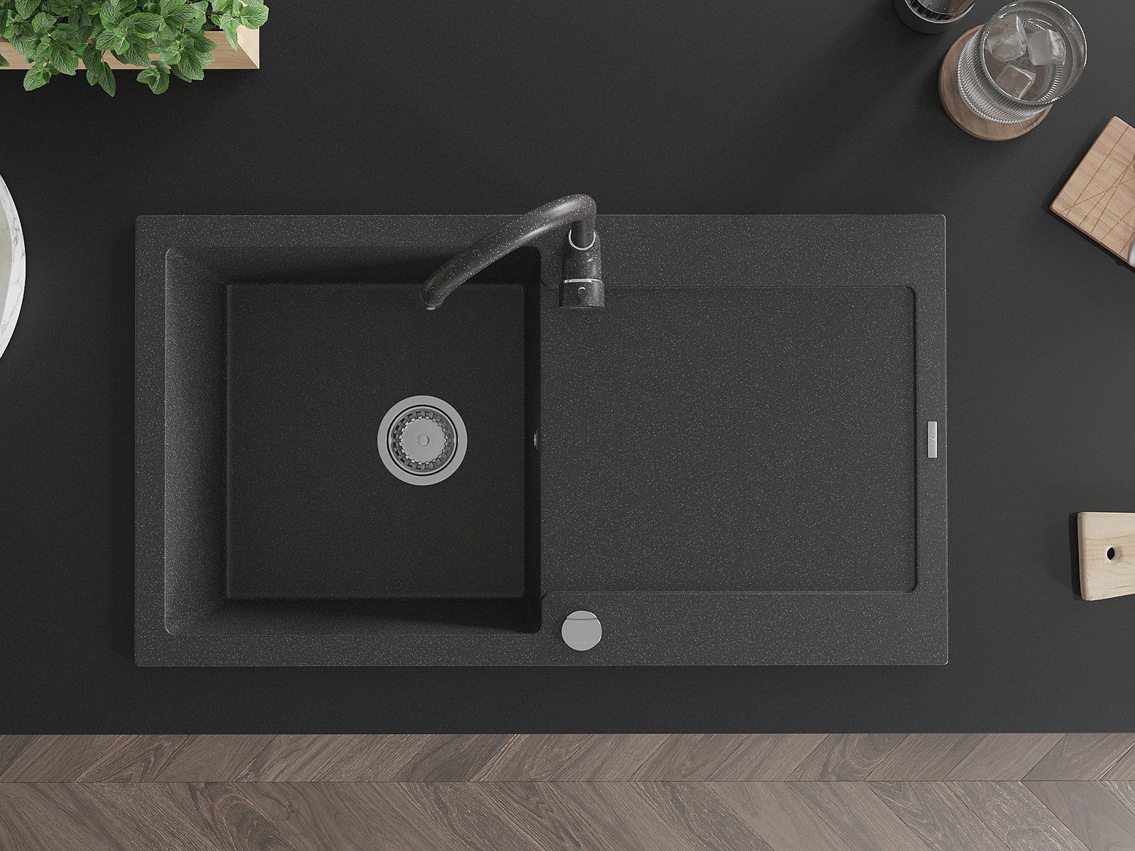 Datorită sistemului de montare universală, chiuveta este reversibilă, iar scurgerea poate fi montată pe blat la stânga sau la dreapta. În acest fel, puteți ajusta cu ușurință pagina la nevoile și condițiile dvs.