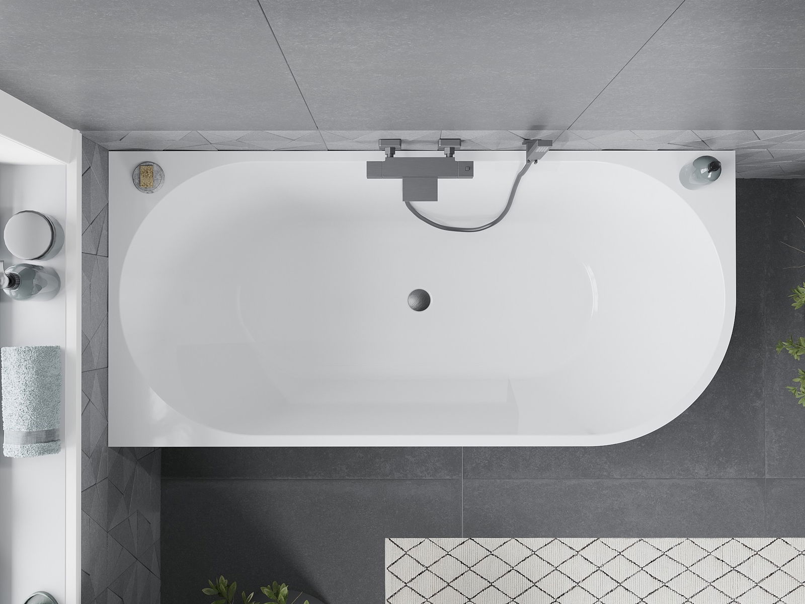 Mexen Mia cadă de baie independentă, colț stânga 160 x 80 cm, alb/negru, preaplin gri pistol periat - 52691608075L-66