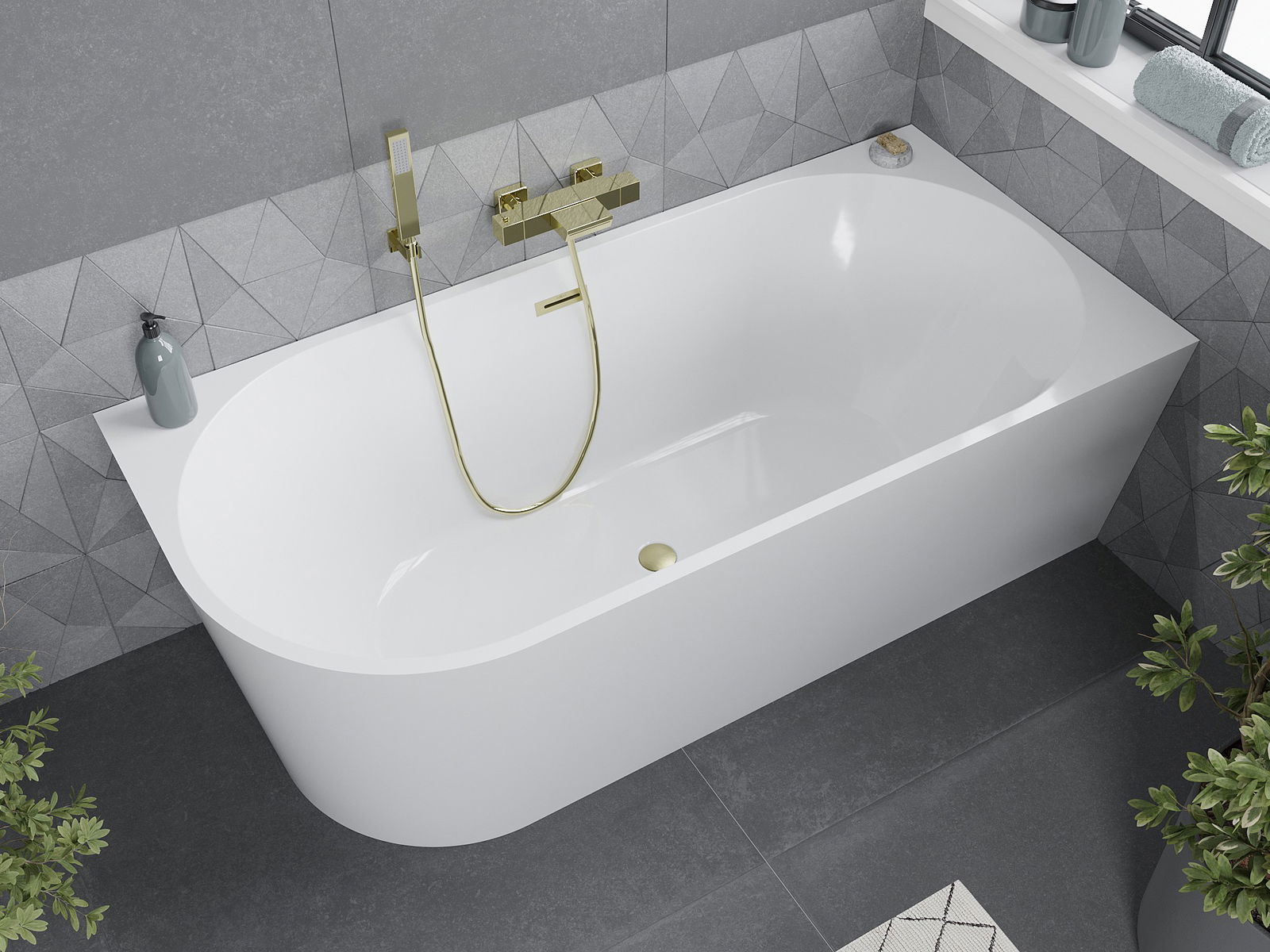 Mexen Mia cadă de colț dreapta independentă 160 x 80 cm, albă, preaplin auriu periat - 52691608000P-55