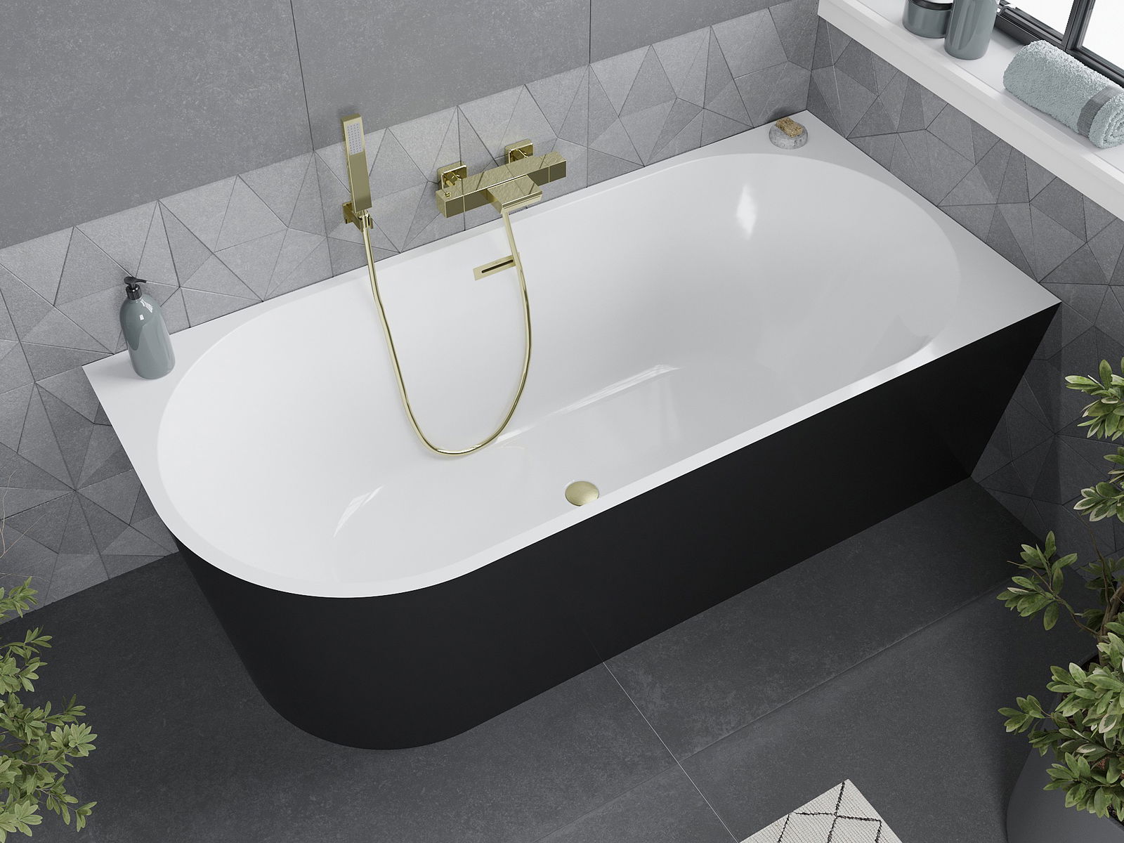 Mexen Mia cadă de colț dreaptă independentă 160 x 80 cm, alb/negru, preaplin auriu periat - 52691608075P-55