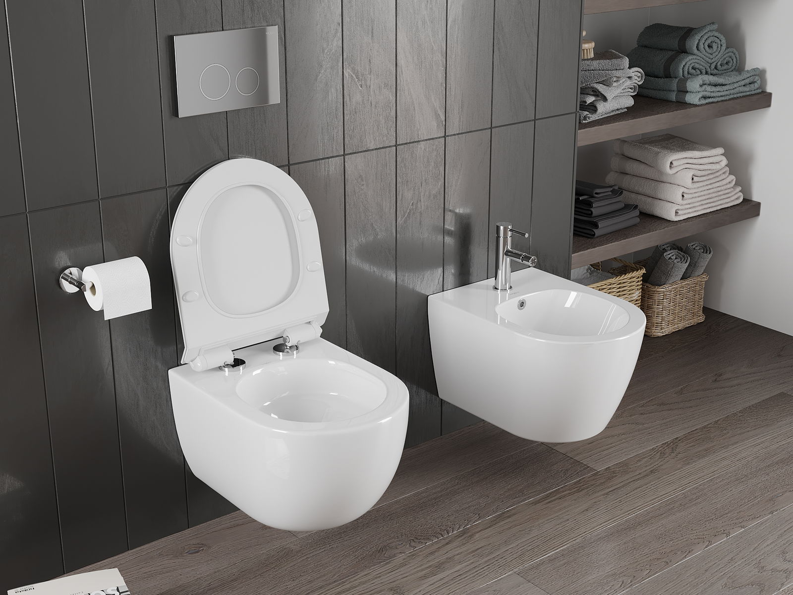 Capacul WC cu închidere lentă este echipat cu un sistem special care încetinește căderea sa rapidă și bruscă. Sistemul elimină eficient problema trântirii capacului și minimizează zgomotul, asigurând închiderea lină și silențioasă a toaletei.