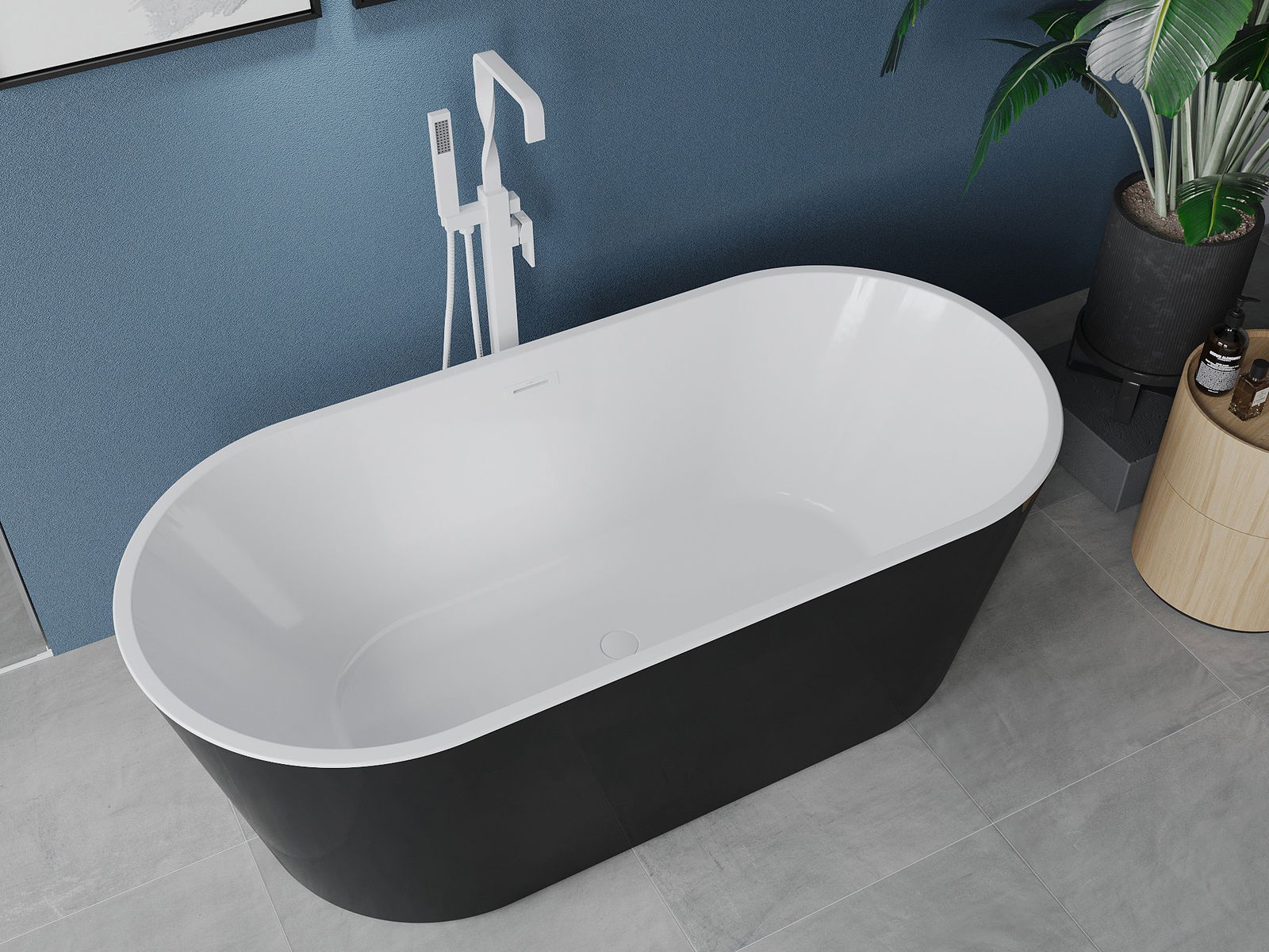 Mexen Luna cadă freestanding 140 x 75 cm, albă/neagră, preaplin alb - 52031407575-20