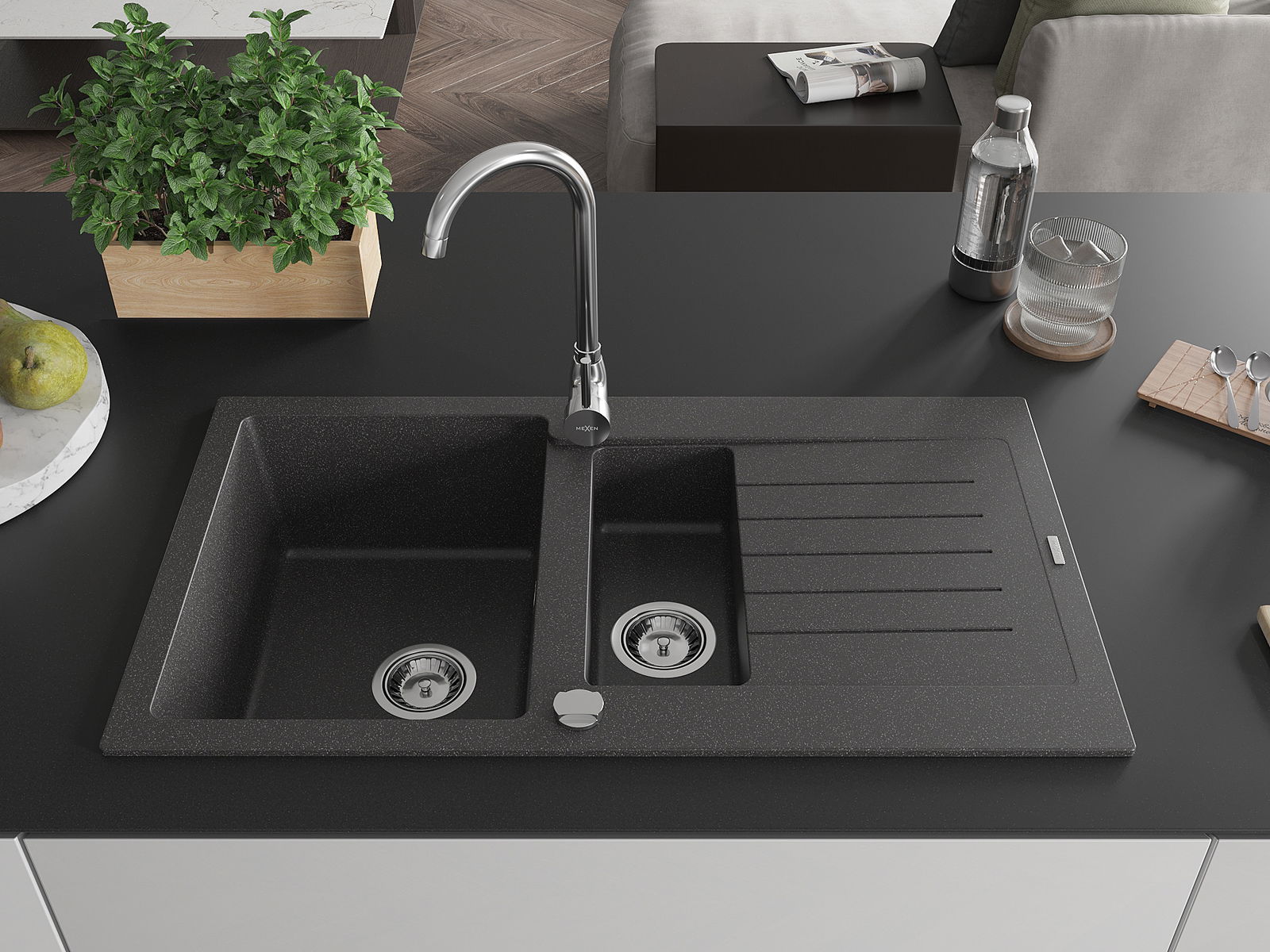 Chiuveta este confecționată din granit de înaltă calitate. Este un complement elegant și, mai ales, practic pentru fiecare bucătărie, indiferent de stilul său. Durabilitatea de înaltă calitate și granit asigură mulți ani de utilizare.