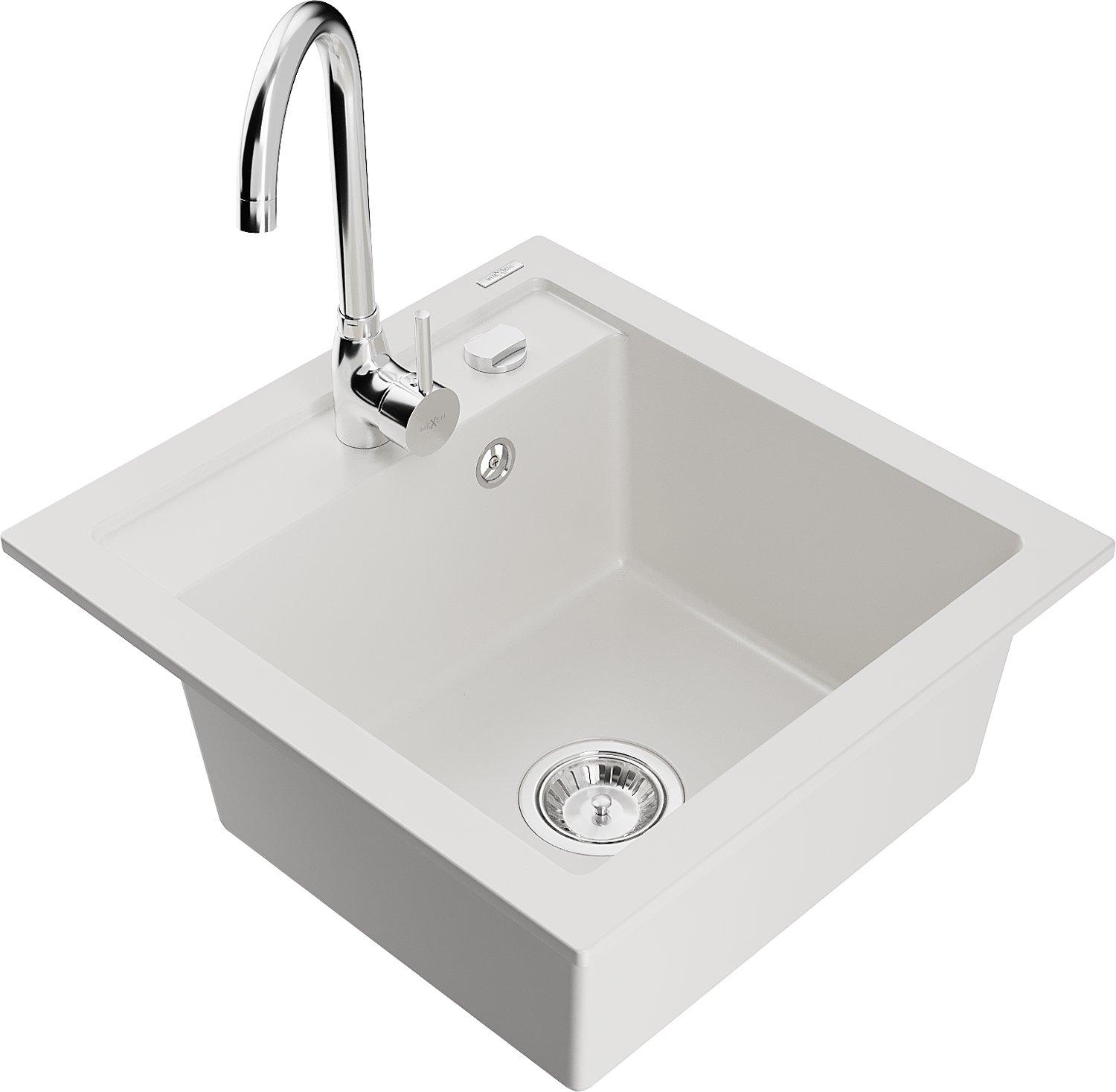 Mexen Vito chiuvetă de bucătărie din granit 1-cameră cu baterie Telma, alb - 6503-20-670200-00