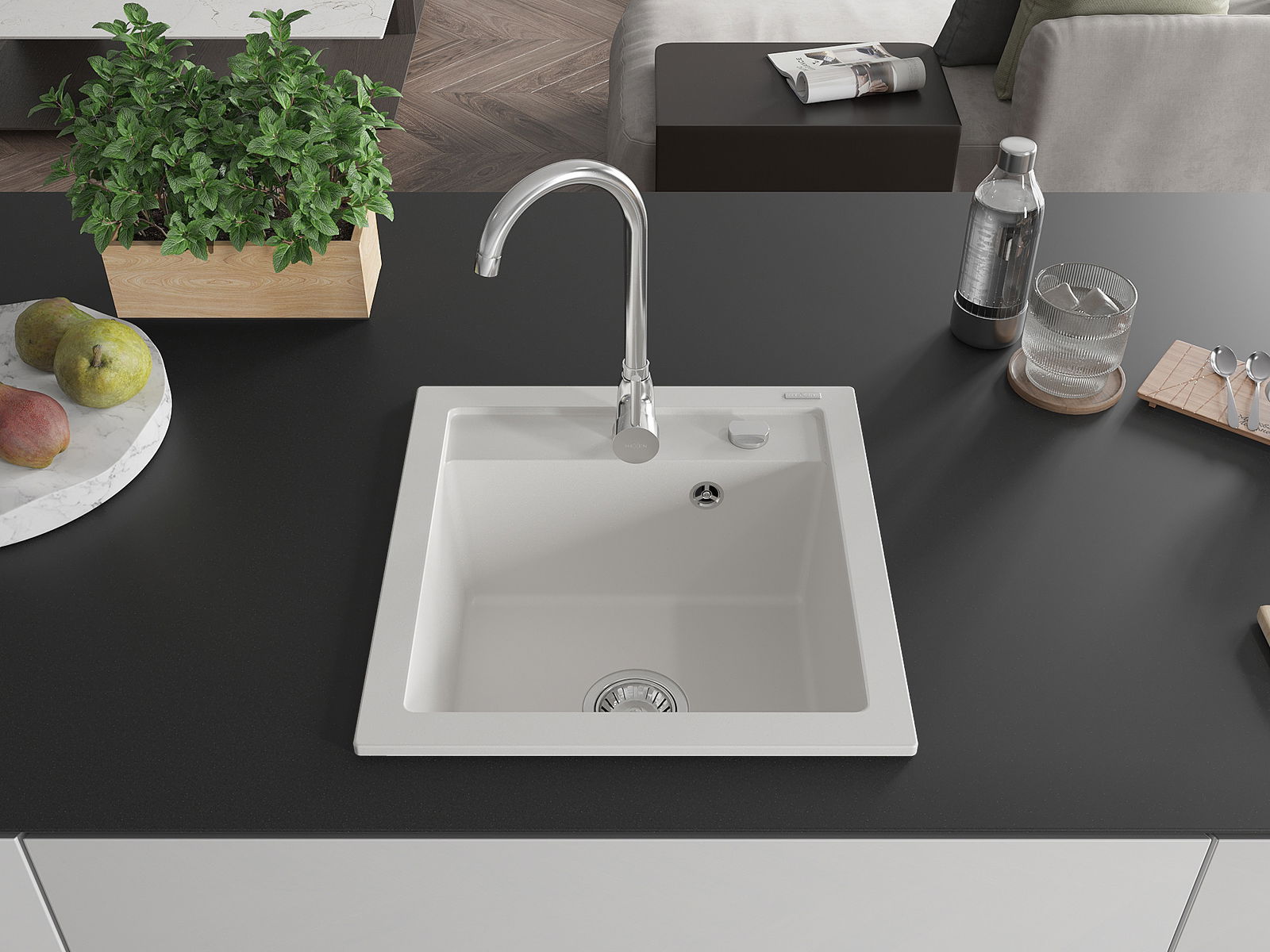 Suprafața chiuvetei este rezistentă la pete și decolorarea, datorită căreia este ușor de curățat și își păstrează culoarea mult timp. Estetică și practic completarea fiecărei bucătării.