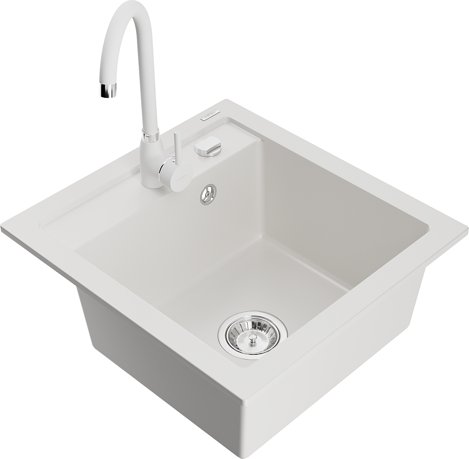 Mexen Vito chiuvetă de bucătărie din granit cu 1 compartiment și baterie de bucătărie Telma, alb - 6503-20-670200-20