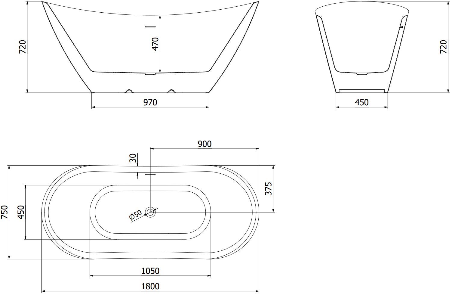 Mexen Lotos cadă freestanding 180 x 75 cm, albă/neagră, preaplin alb - 52051807775-20