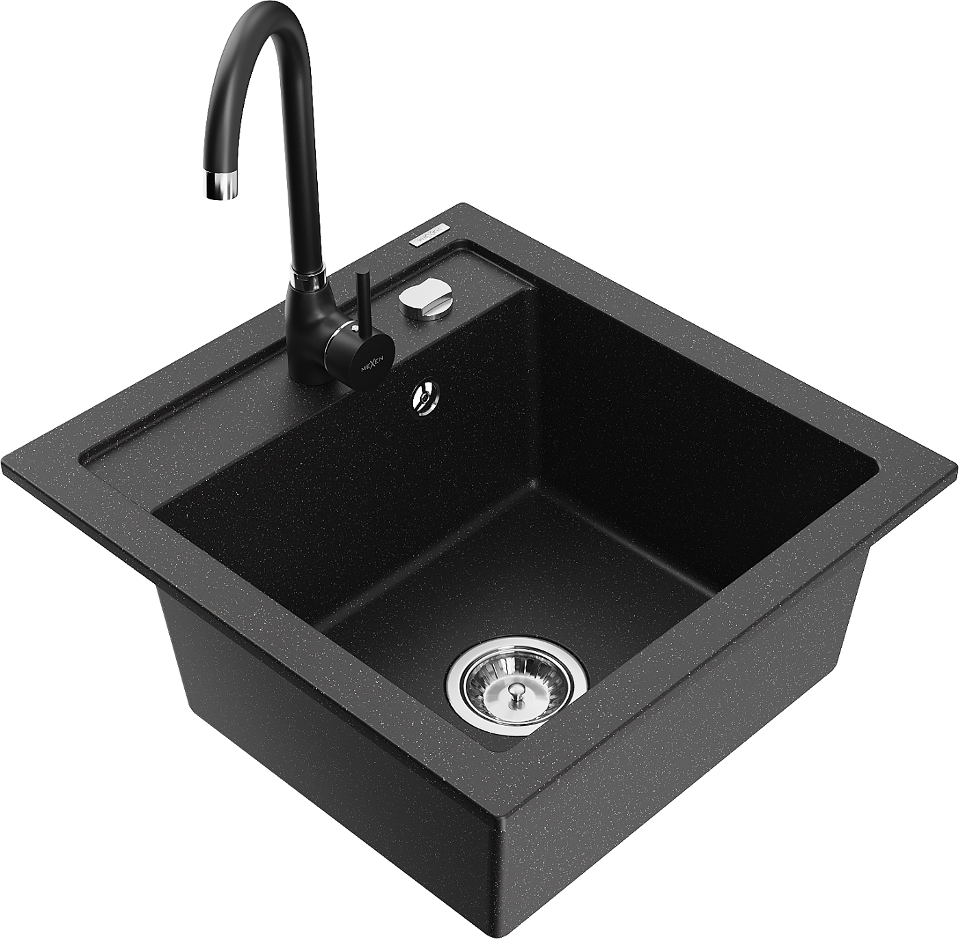 Mexen Vito chiuvetă de bucătărie din granit cu 1 cuvă cu robinet de bucătărie Telma, negru/argintiu metalizat - 6503-73-670200-?